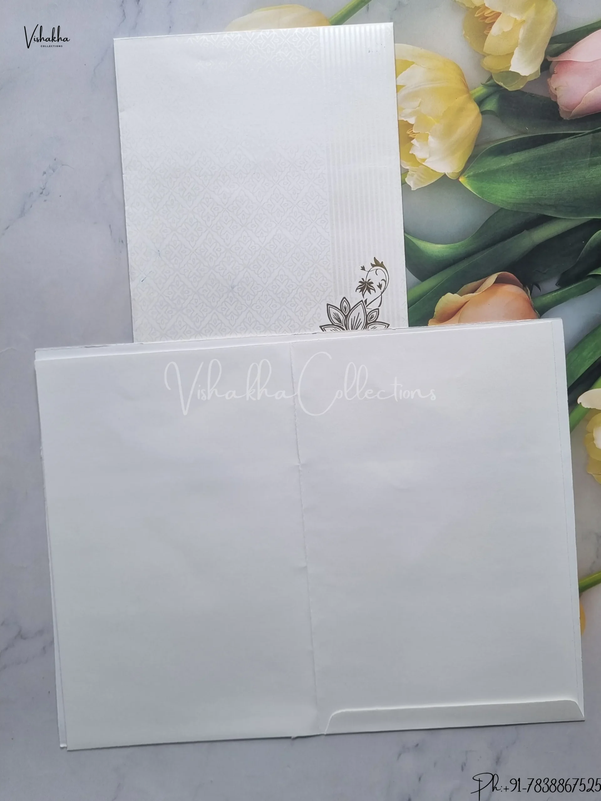 Vishakha Collections presents you beautiful luxury wedding invitation cards with all latest designs and the latest variety. Its just not a wedding invitation card but a beautiful feeling of love and relationship it carries for you. Beautifully printed and packed with a bundle of love. if you like it, dont think again, just go for it.If you are worrying about the quality of the product, send your doubts to us. We are here to help you. If you want in wholesale or bulk, dont forget to contact us.