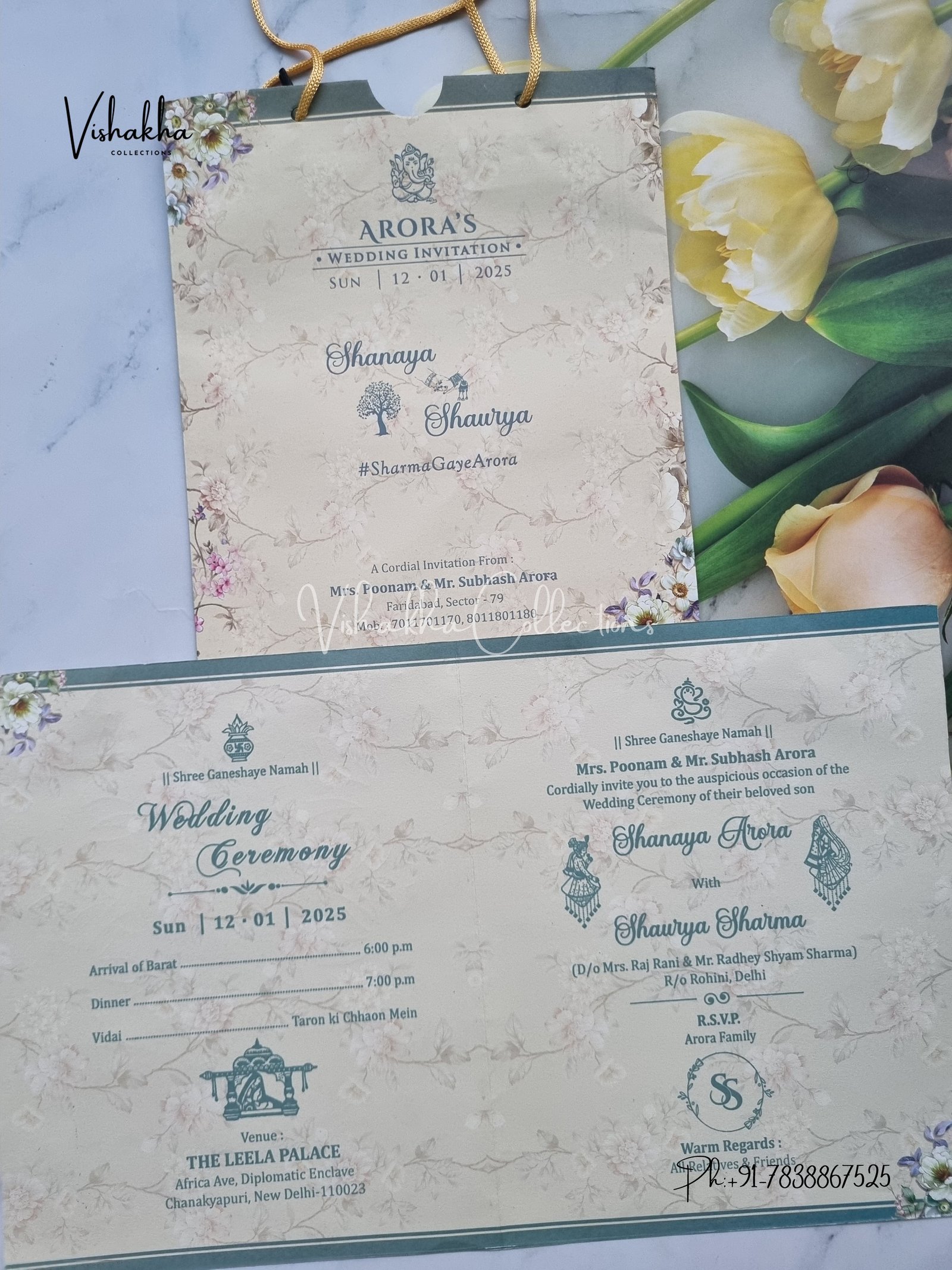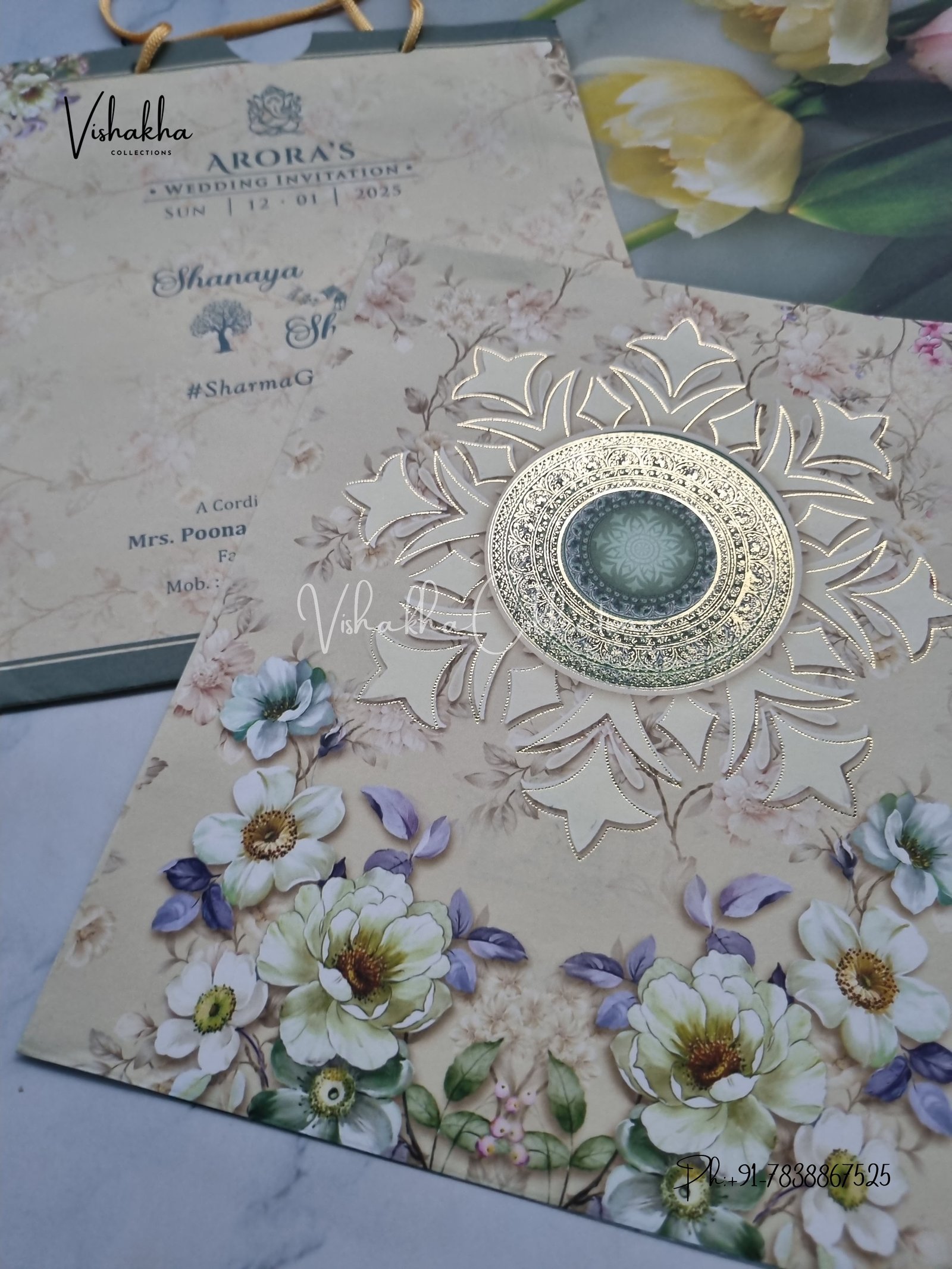 Vishakha Collections presents you beautiful Flower Carry Bag Invitation Cards ATS-9112 with all latest designs and the latest variety. It is just not a wedding invitation card but a beautiful feeling of love and relationship it carries for you. Beautifully printed and packed with a bundle of love.