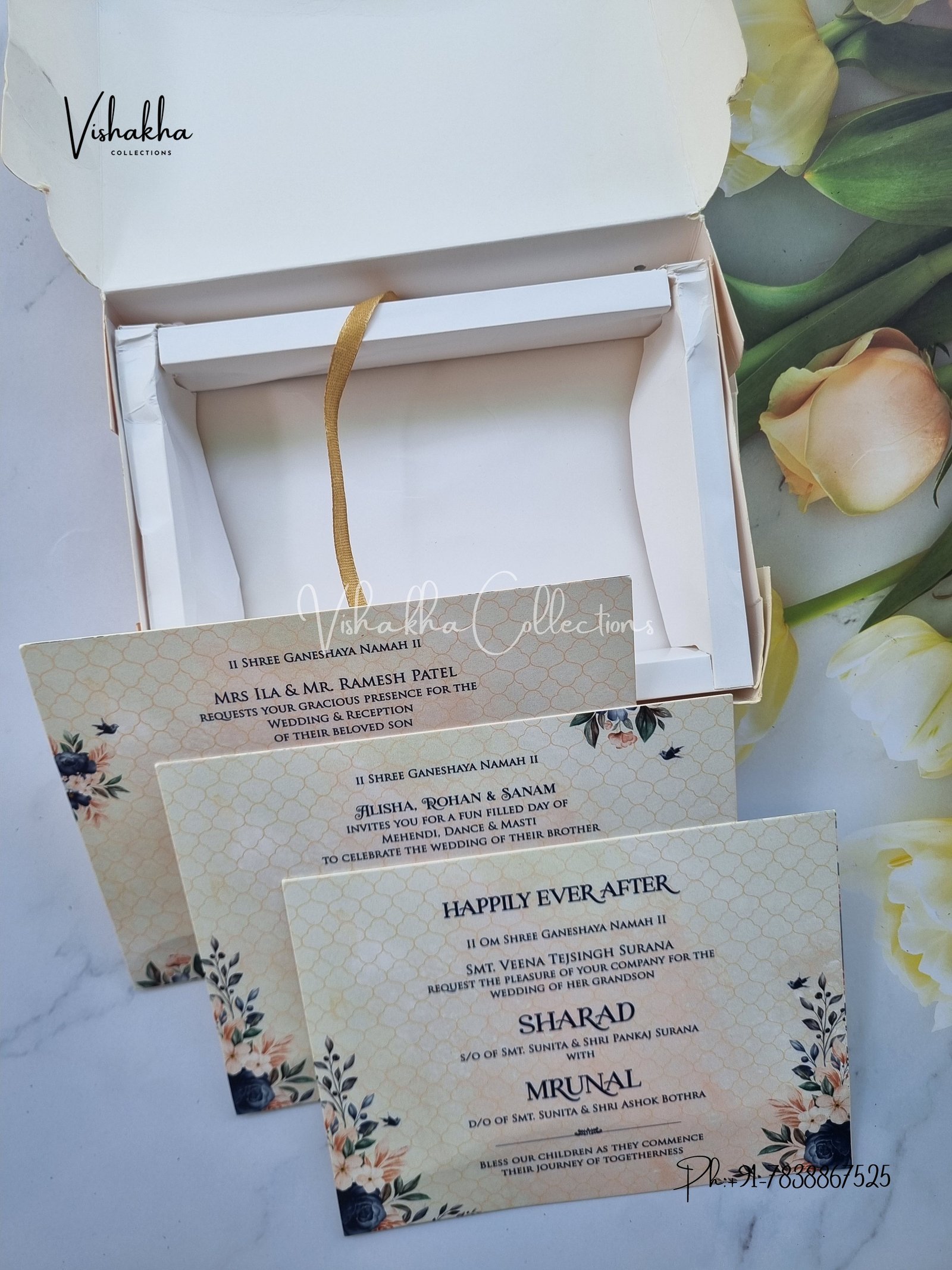 Vishakha Collections presents you beautiful luxury wedding invitation cards with all latest designs and the latest variety. Its just not a wedding invitation card but a beautiful feeling of love and relationship it carries for you. Beautifully printed and packed with a bundle of love. if you like it, dont think again, just go for it.If you are worrying about the quality of the product, send your doubts to us. We are here to help you. If you want in wholesale or bulk, dont forget to contact us.