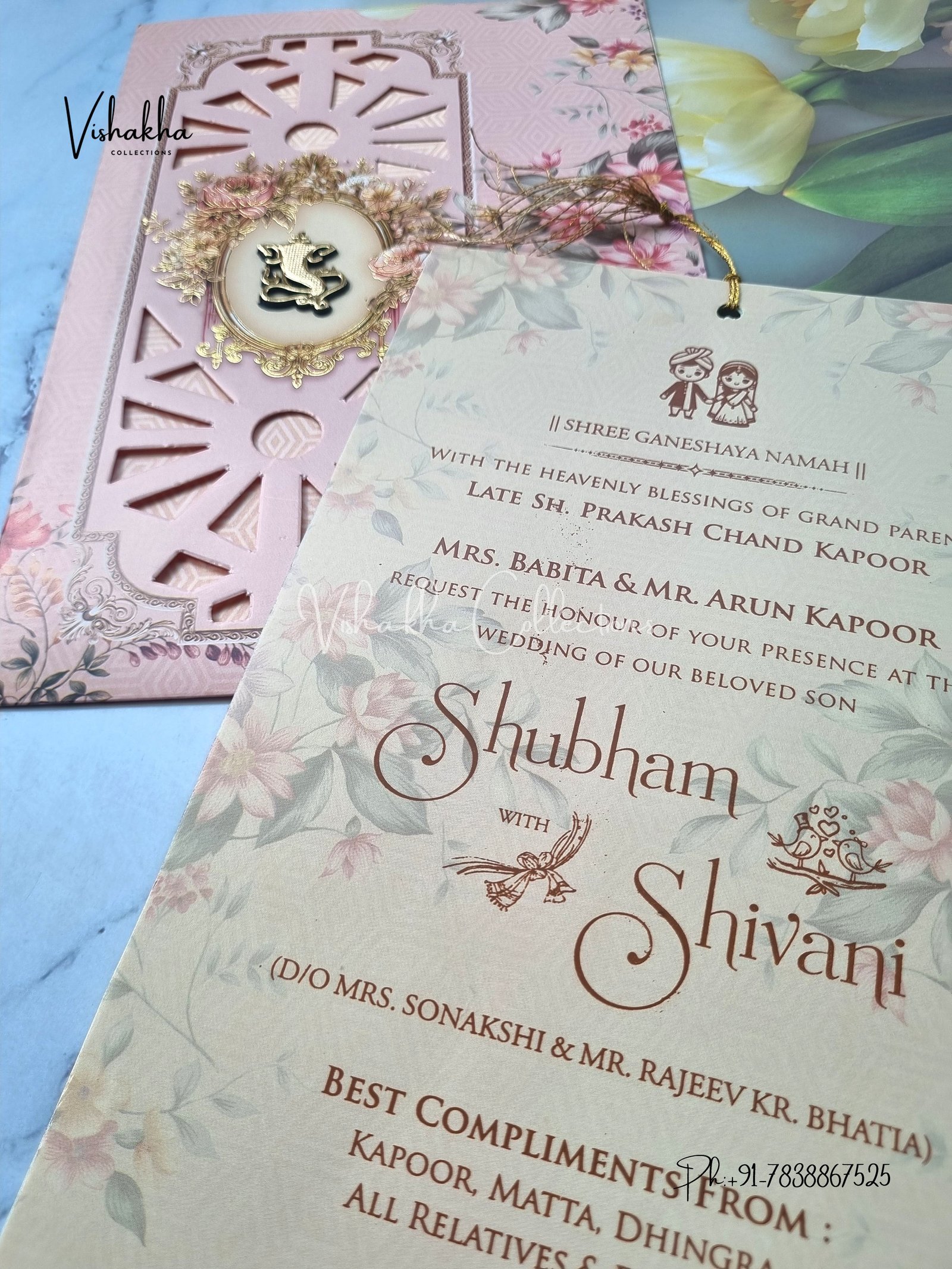 Vishakha Collections presents you beautiful luxury wedding invitation cards with all latest designs and the latest variety. Its just not a wedding invitation card but a beautiful feeling of love and relationship it carries for you. Beautifully printed and packed with a bundle of love. if you like it, dont think again, just go for it.If you are worrying about the quality of the product, send your doubts to us. We are here to help you. If you want in wholesale or bulk, dont forget to contact us.
