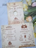 Vishakha Collections presents you beautiful luxury wedding invitation cards with all latest designs and the latest variety. Its just not a wedding invitation card but a beautiful feeling of love and relationship it carries for you. Beautifully printed and packed with a bundle of love. if you like it, dont think again, just go for it.If you are worrying about the quality of the product, send your doubts to us. We are here to help you. If you want in wholesale or bulk, dont forget to contact us.