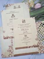 Vishakha Collections presents you beautiful luxury wedding invitation cards with all latest designs and the latest variety. Its just not a wedding invitation card but a beautiful feeling of love and relationship it carries for you. Beautifully printed and packed with a bundle of love. if you like it, dont think again, just go for it.If you are worrying about the quality of the product, send your doubts to us. We are here to help you. If you want in wholesale or bulk, dont forget to contact us.