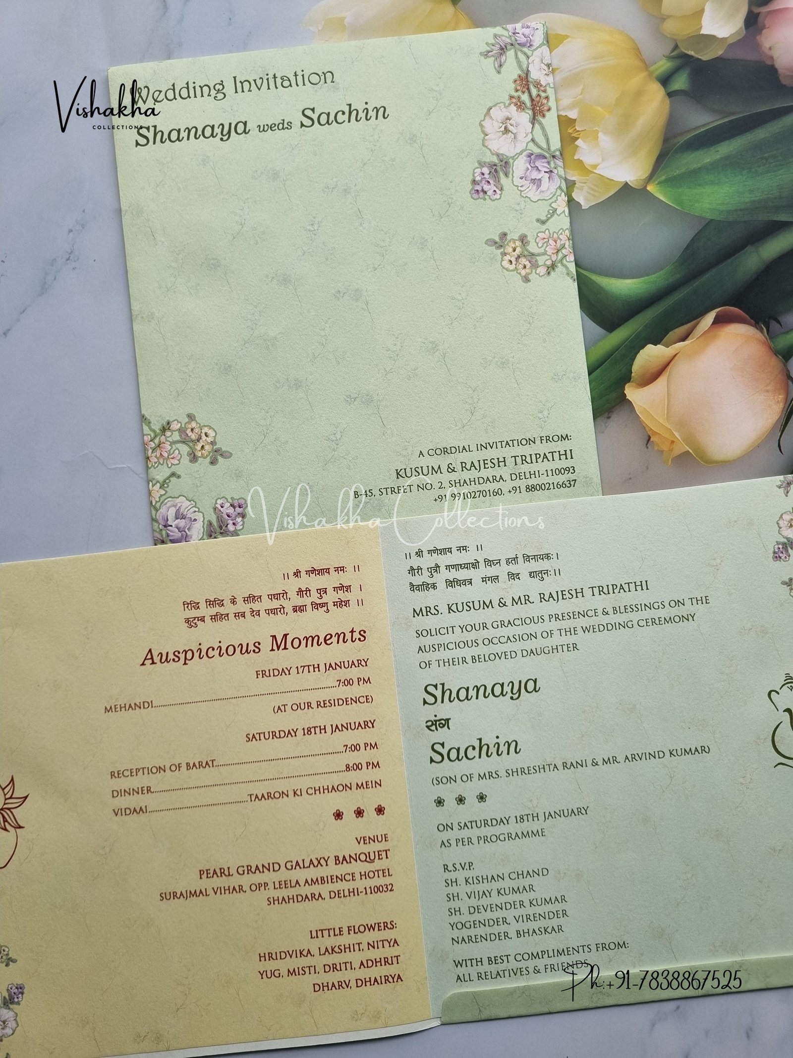 Vishakha Collections presents you beautiful luxury wedding invitation cards with all latest designs and the latest variety. Its just not a wedding invitation card but a beautiful feeling of love and relationship it carries for you. Beautifully printed and packed with a bundle of love. if you like it, dont think again, just go for it.If you are worrying about the quality of the product, send your doubts to us. We are here to help you. If you want in wholesale or bulk, dont forget to contact us.