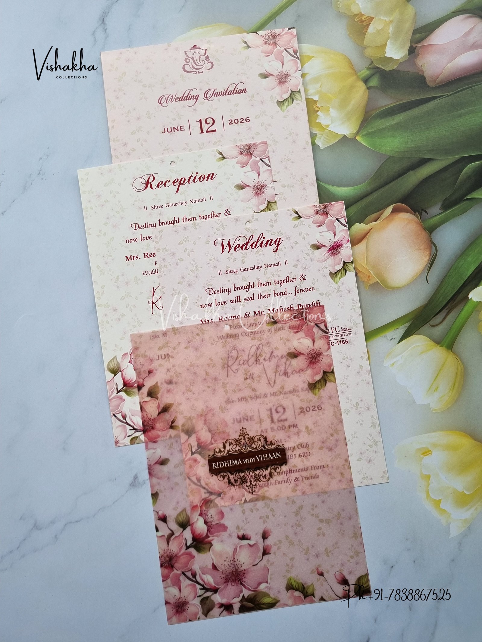 Flower Hindu Muslim Christian Sikh Vellum Paper invitation Cards PN-1165