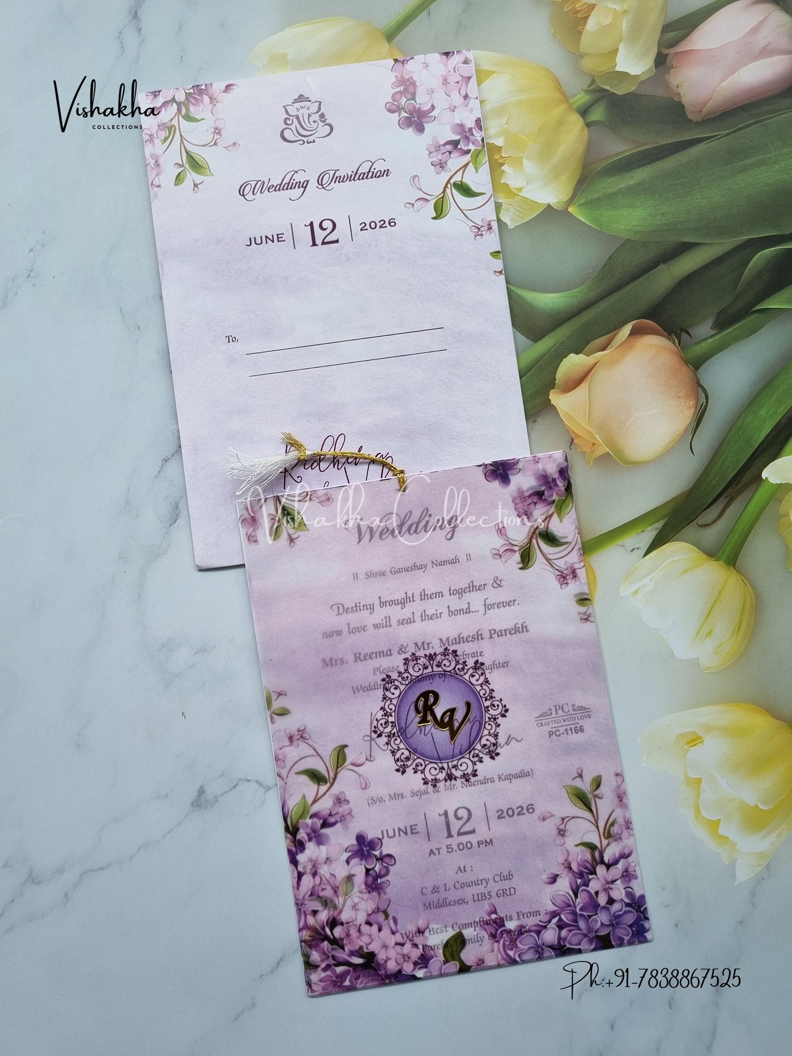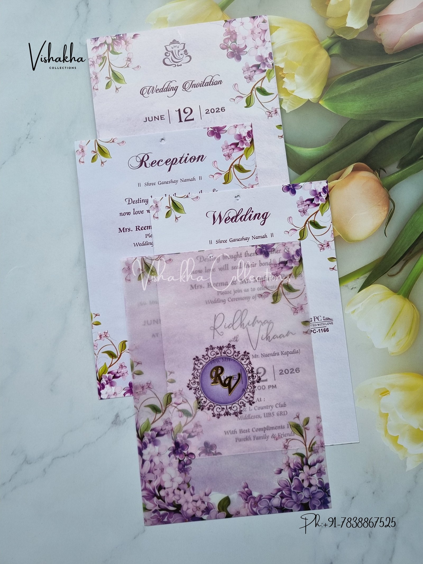 Vishakha Collections presents you beautiful luxury wedding invitation cards with all latest designs and the latest variety. Its just not a wedding invitation card but a beautiful feeling of love and relationship it carries for you. Beautifully printed and packed with a bundle of love. if you like it, dont think again, just go for it.If you are worrying about the quality of the product, send your doubts to us. We are here to help you. If you want in wholesale or bulk, dont forget to contact us.
