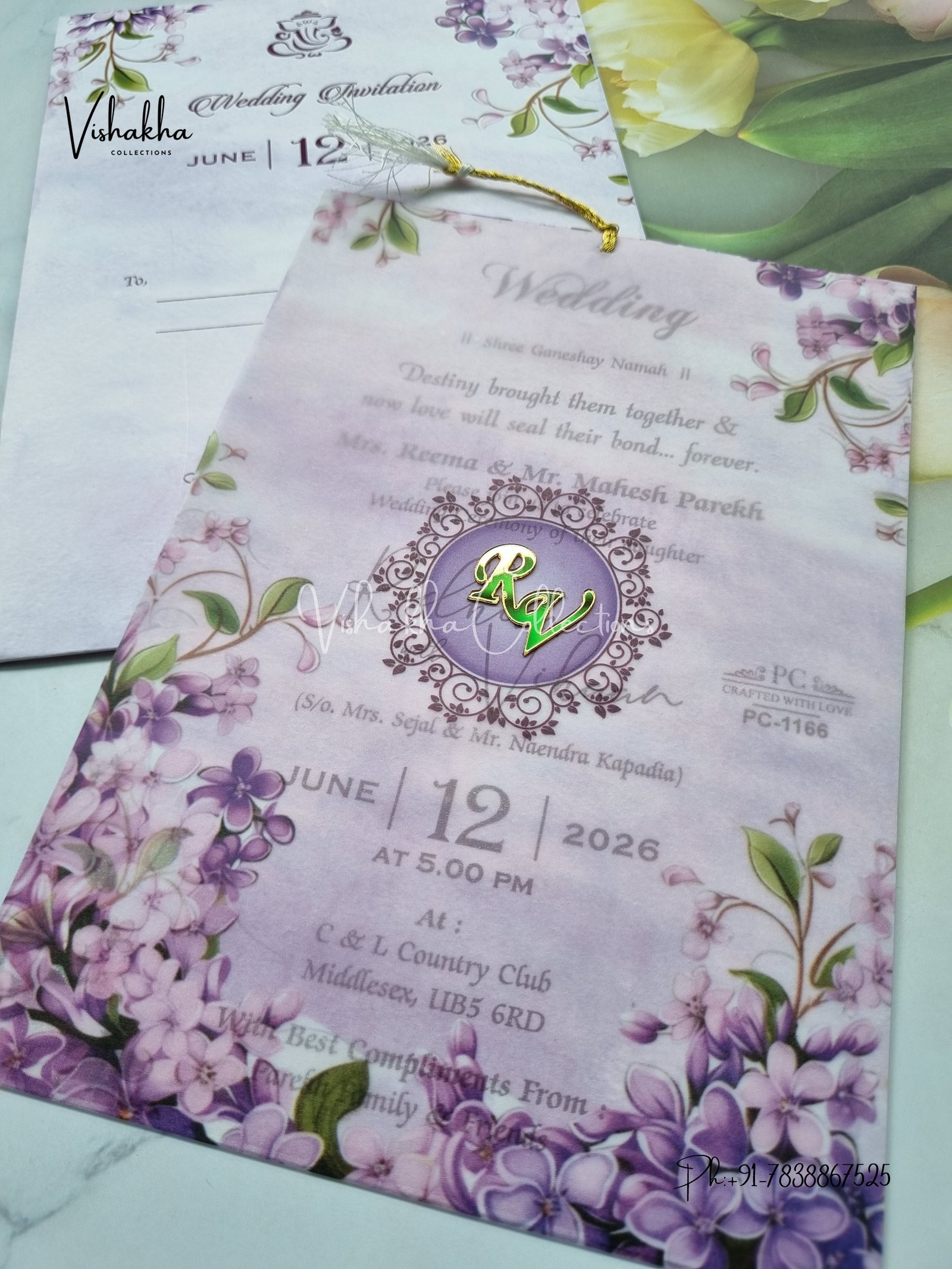 Flower Hindu Muslim Christian Sikh Vellum Paper invitation Cards PN-1166
