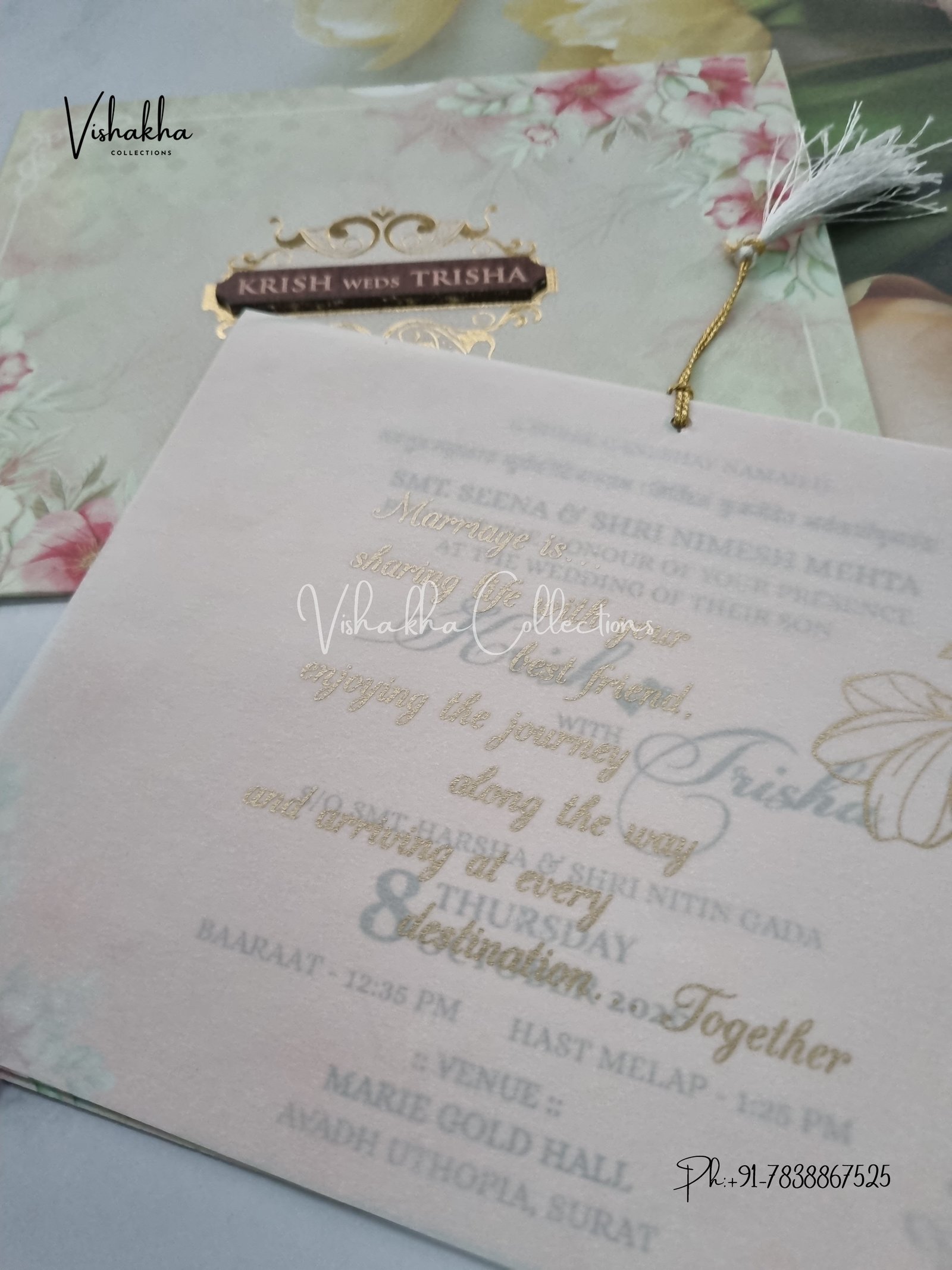 Vishakha Collections presents you beautiful luxury wedding invitation cards with all latest designs and the latest variety. Its just not a wedding invitation card but a beautiful feeling of love and relationship it carries for you. Beautifully printed and packed with a bundle of love. if you like it, dont think again, just go for it.If you are worrying about the quality of the product, send your doubts to us. We are here to help you. If you want in wholesale or bulk, dont forget to contact us.