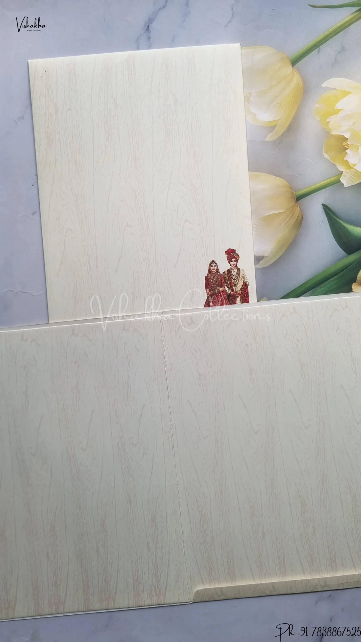 Vishakha Collections presents you beautiful luxury wedding invitation cards with all latest designs and the latest variety. Its just not a wedding invitation card but a beautiful feeling of love and relationship it carries for you. Beautifully printed and packed with a bundle of love. if you like it, dont think again, just go for it.If you are worrying about the quality of the product, send your doubts to us. We are here to help you. If you want in wholesale or bulk, dont forget to contact us.