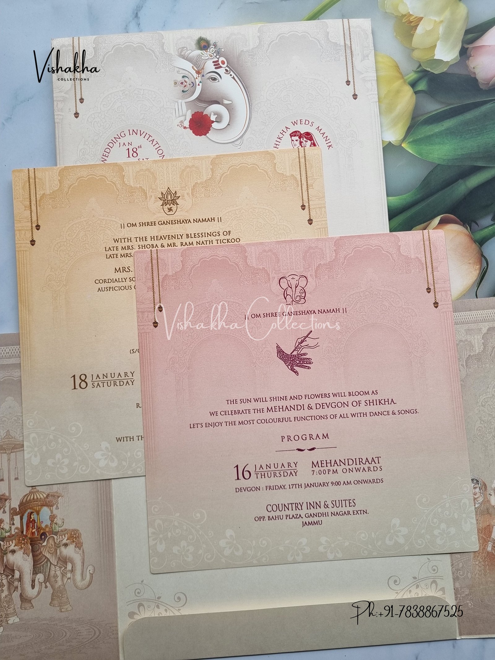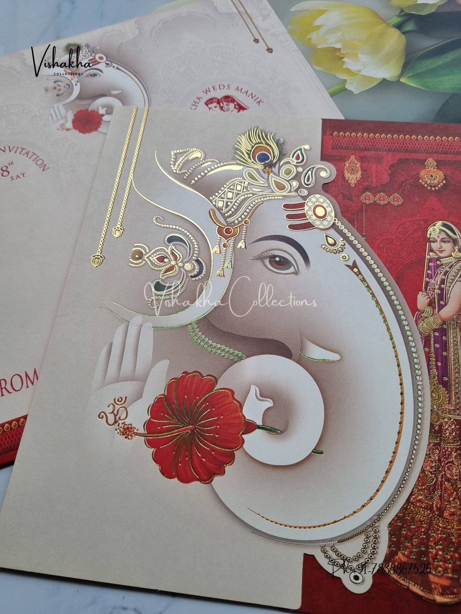 Semi Box Hathi Hindu invitation Cards EJ-4100