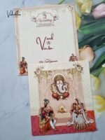 ₹24.00Ganesh Ji Dulah Dulhan Hindu Pink and Brown Colored wedding invitation Cards NA-1125-22