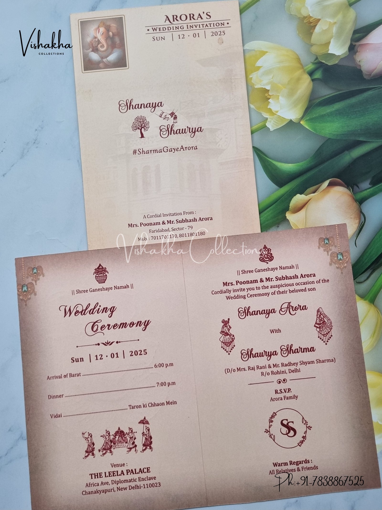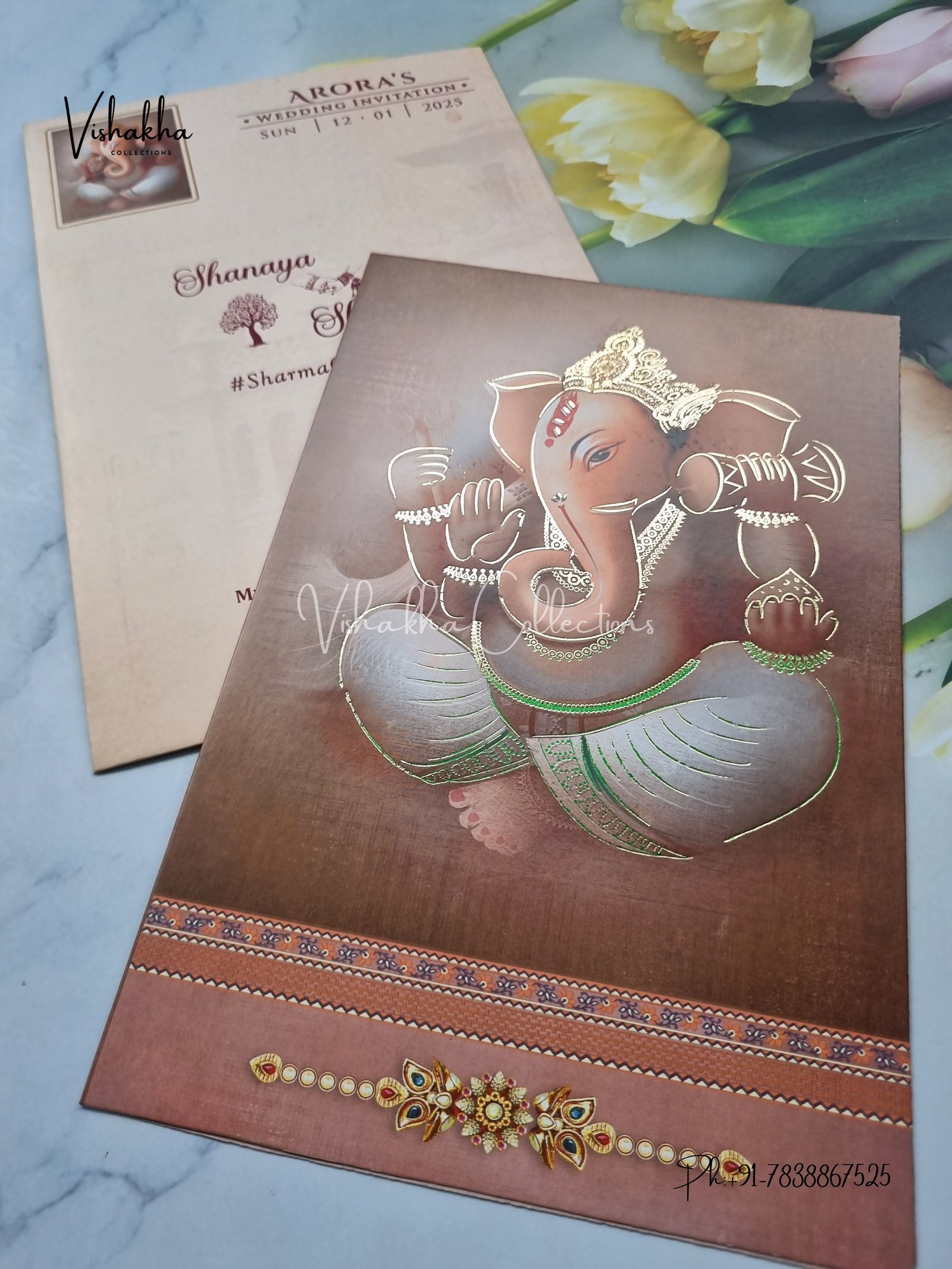 Vishakha Collections presents you beautiful luxury wedding invitation cards with all latest designs and the latest variety. Its just not a wedding invitation card but a beautiful feeling of love and relationship it carries for you. Beautifully printed and packed with a bundle of love. if you like it, dont think again, just go for it.If you are worrying about the quality of the product, send your doubts to us. We are here to help you. If you want in wholesale or bulk, dont forget to contact us.