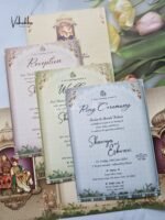 Vishakha Collections presents you beautiful luxury wedding invitation cards with all latest designs and the latest variety. Its just not a wedding invitation card but a beautiful feeling of love and relationship it carries for you. Beautifully printed and packed with a bundle of love. if you like it, dont think again, just go for it.If you are worrying about the quality of the product, send your doubts to us. We are here to help you. If you want in wholesale or bulk, dont forget to contact us.