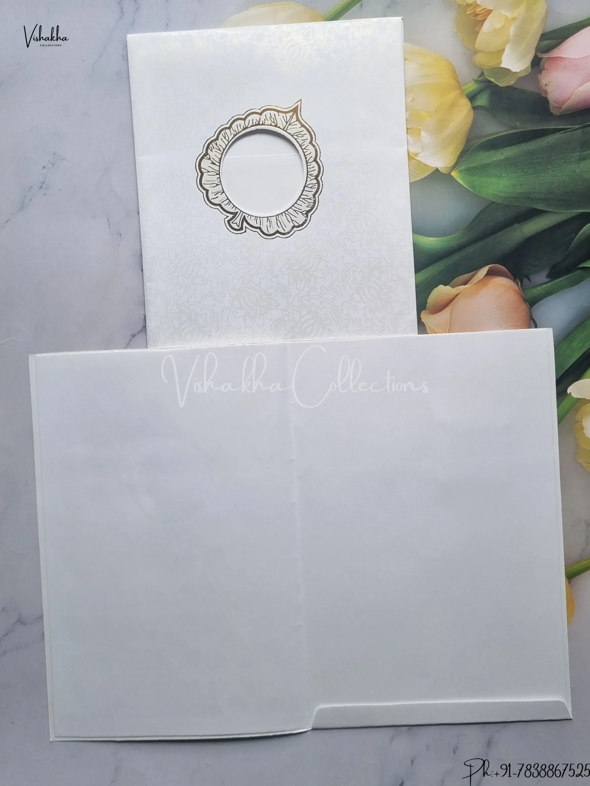Vishakha Collections presents you beautiful luxury wedding invitation cards with all latest designs and the latest variety. Its just not a wedding invitation card but a beautiful feeling of love and relationship it carries for you. Beautifully printed and packed with a bundle of love. if you like it, dont think again, just go for it.If you are worrying about the quality of the product, send your doubts to us. We are here to help you. If you want in wholesale or bulk, dont forget to contact us.