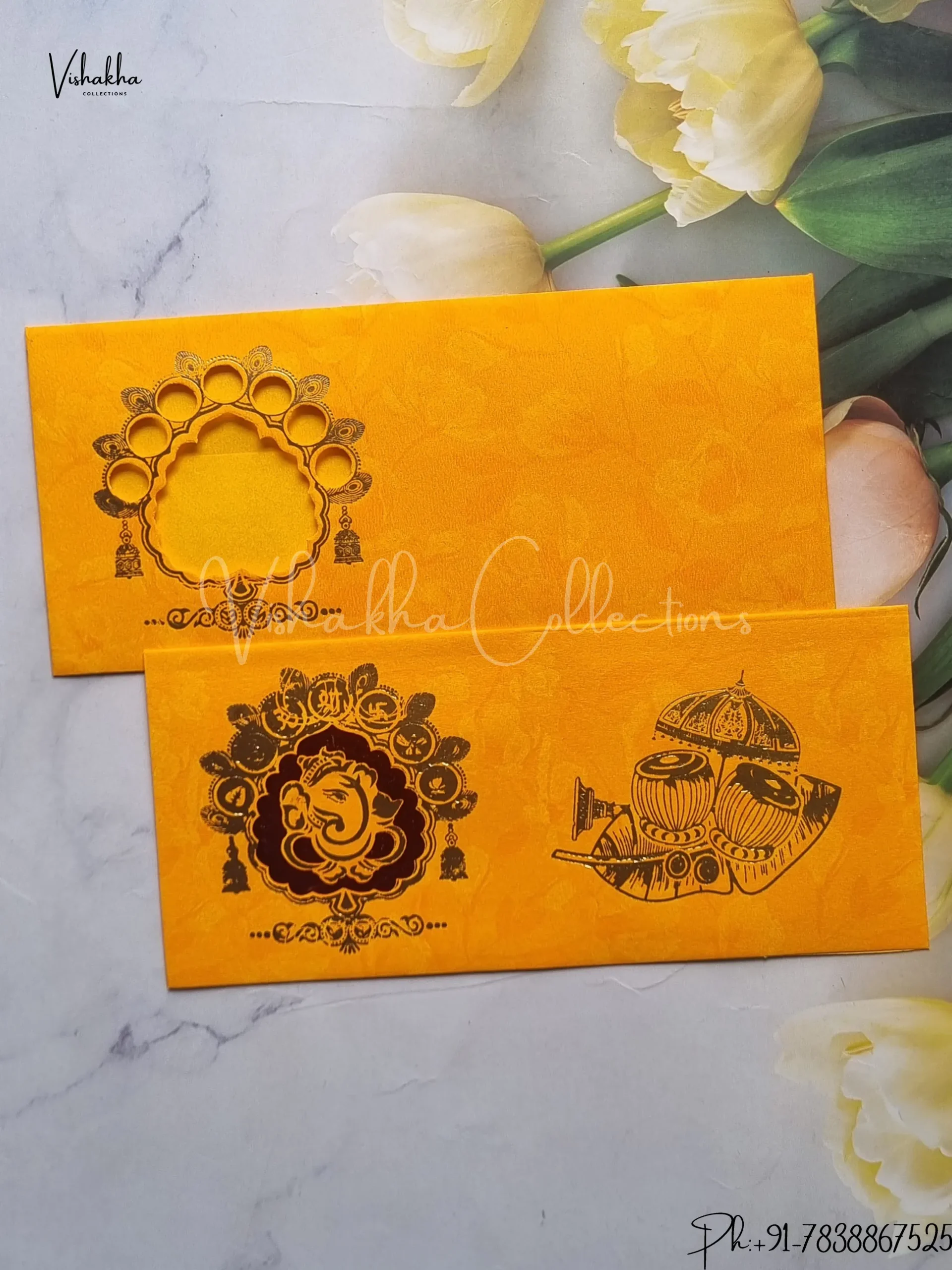Ganesh Ji Hindu Yellow Colored wedding invitation Cards GS-54