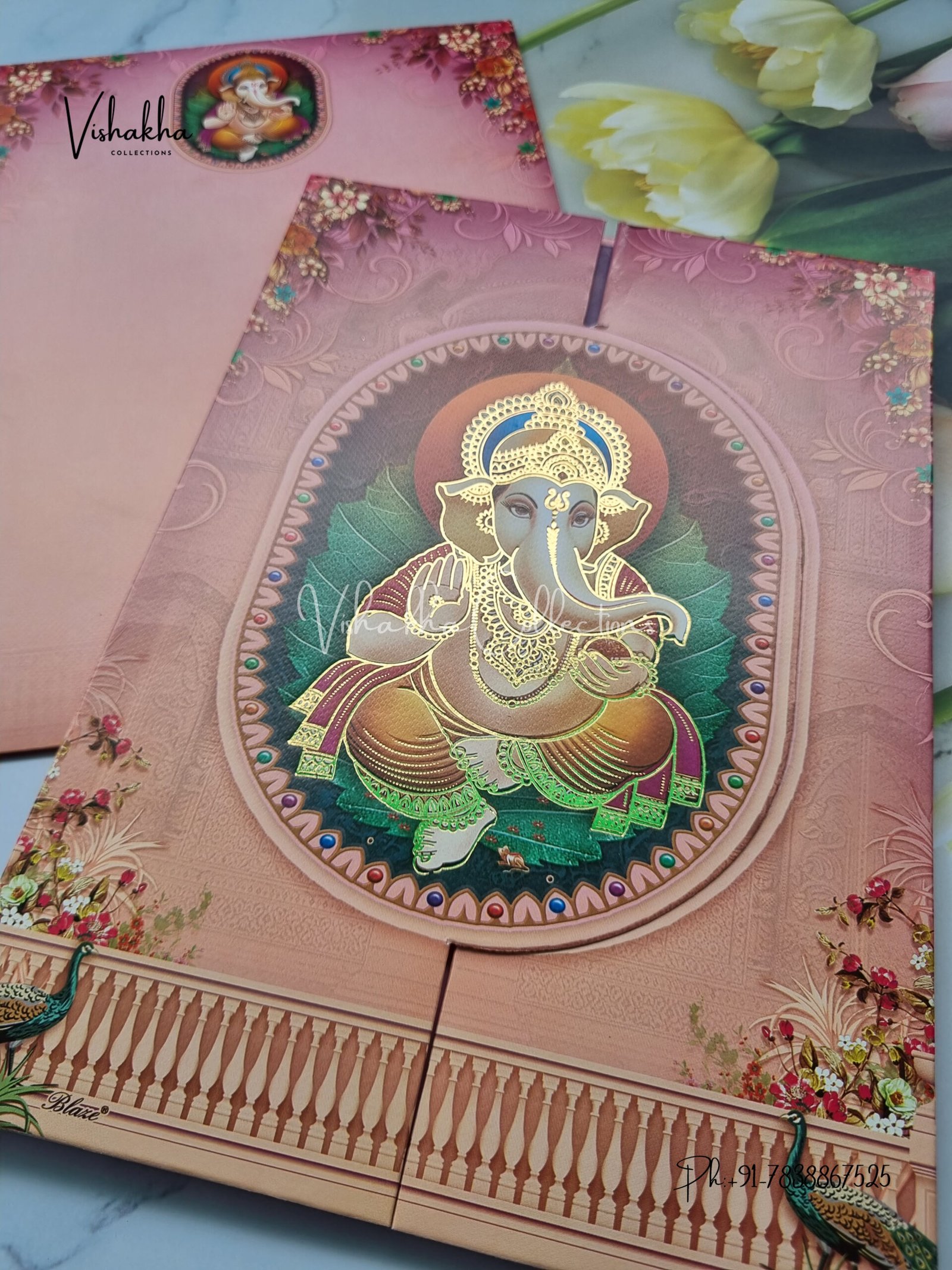 Vishakha Collections presents you beautiful luxury wedding invitation cards with all latest designs and the latest variety. Its just not a wedding invitation card but a beautiful feeling of love and relationship it carries for you. Beautifully printed and packed with a bundle of love. if you like it, dont think again, just go for it.If you are worrying about the quality of the product, send your doubts to us. We are here to help you. If you want in wholesale or bulk, dont forget to contact us.