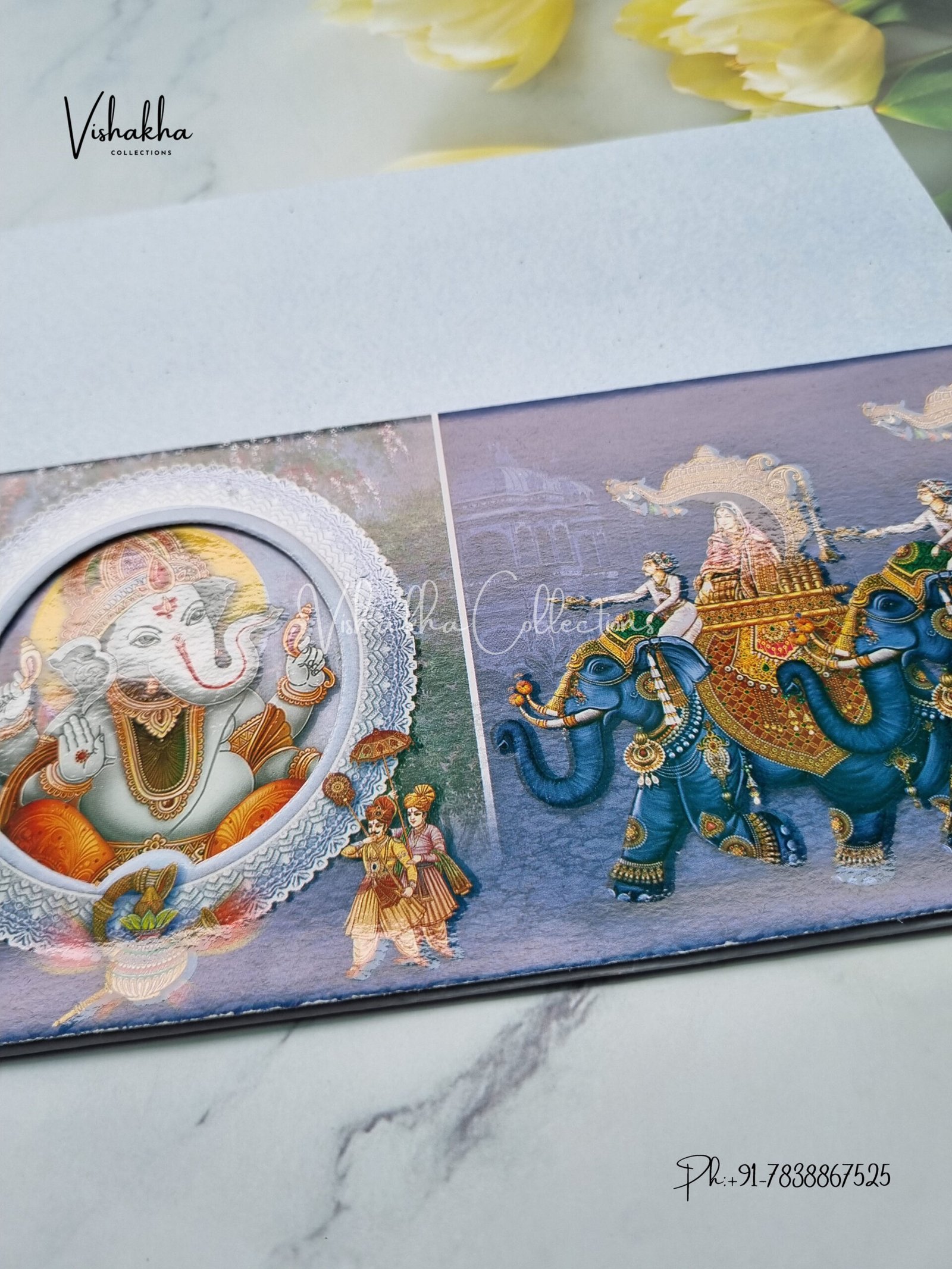 Ganesh with Shaahi Baraat Three Fold Style Invitation Card