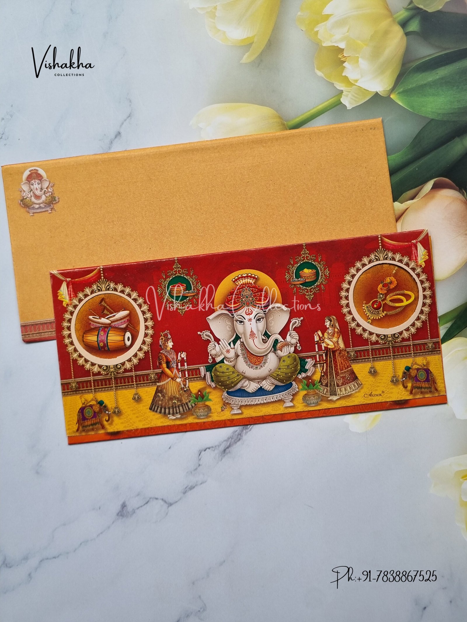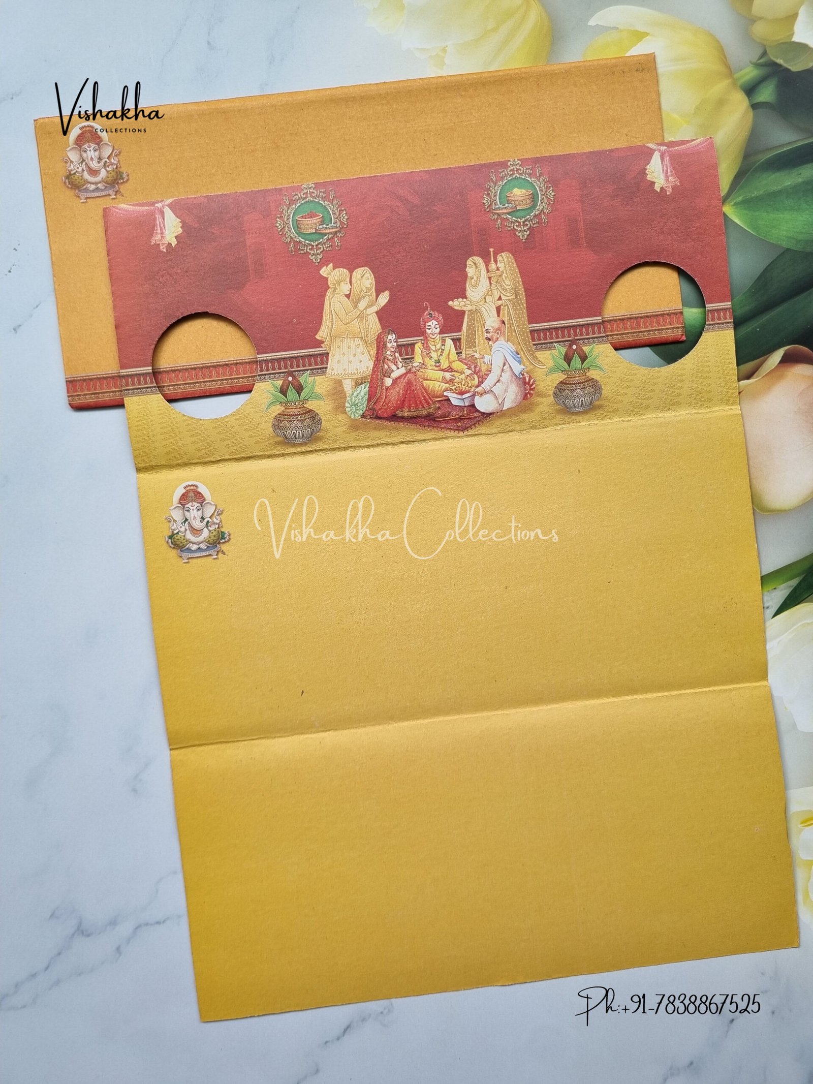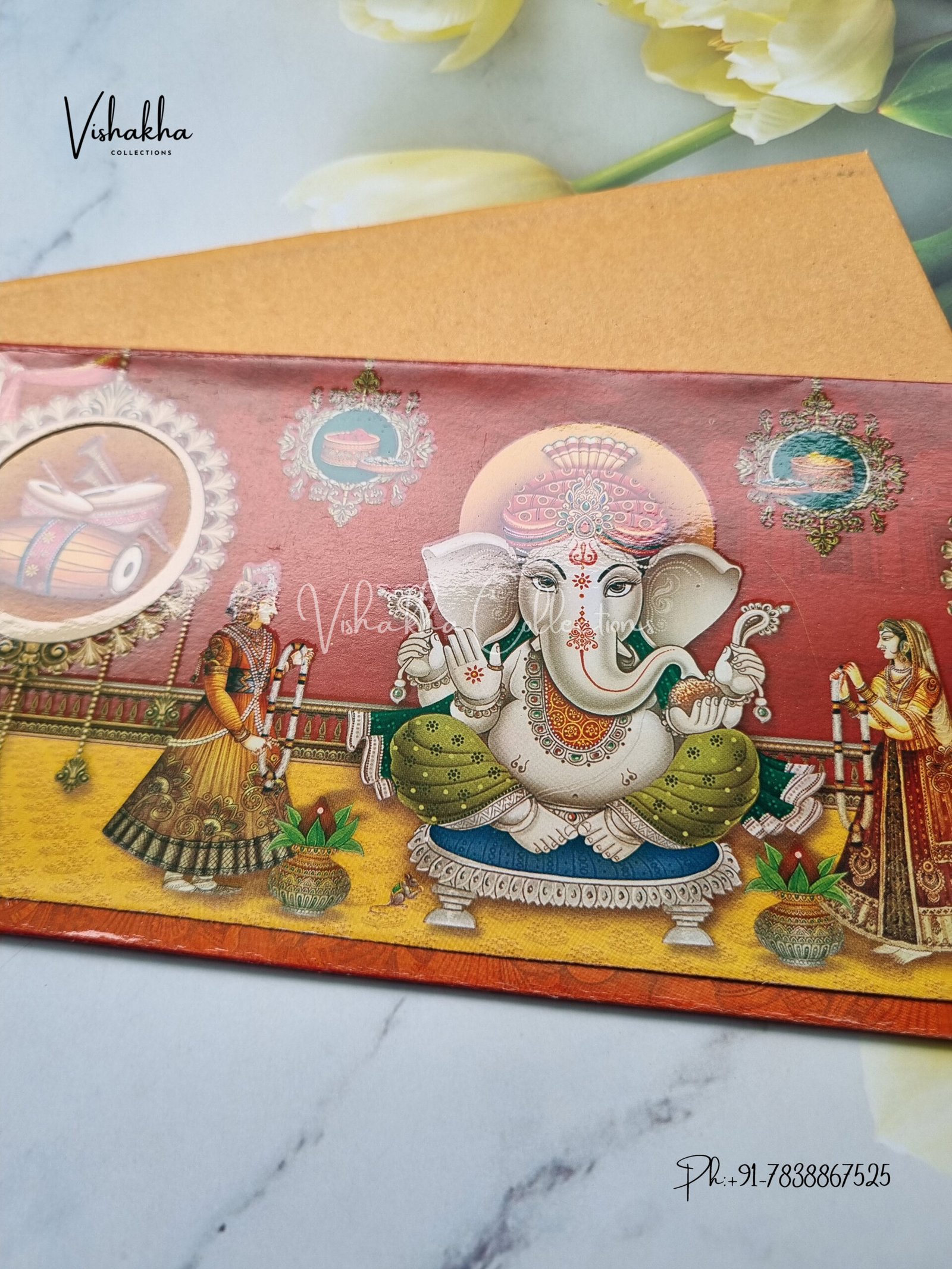 Vishakha Collections presents you beautiful luxury wedding invitation cards with all latest designs and the latest variety. Its just not a wedding invitation card but a beautiful feeling of love and relationship it carries for you. Beautifully printed and packed with a bundle of love. if you like it, dont think again, just go for it.If you are worrying about the quality of the product, send your doubts to us. We are here to help you. If you want in wholesale or bulk, dont forget to contact us.