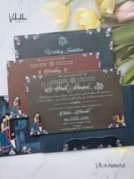 Vishakha Collections presents you beautiful luxury wedding invitation cards with all latest designs and the latest variety. Its just not a wedding invitation card but a beautiful feeling of love and relationship it carries for you. Beautifully printed and packed with a bundle of love. if you like it, dont think again, just go for it.If you are worrying about the quality of the product, send your doubts to us. We are here to help you. If you want in wholesale or bulk, dont forget to contact us.