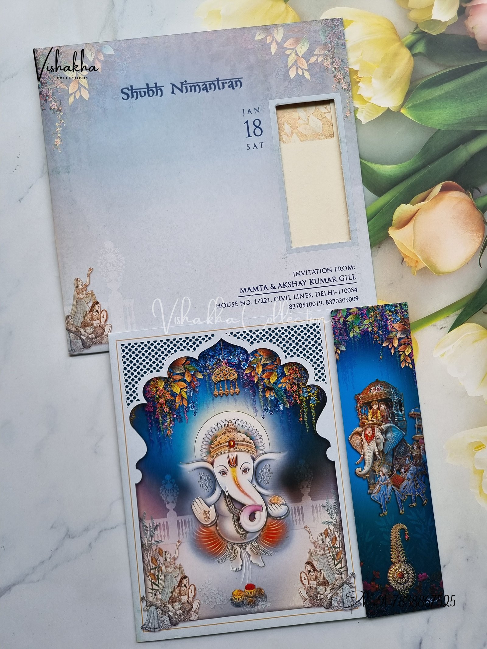 Hathi Ganesh Ji Dulah Dulhan Double Door Hindu invitation Cards EJ-4124