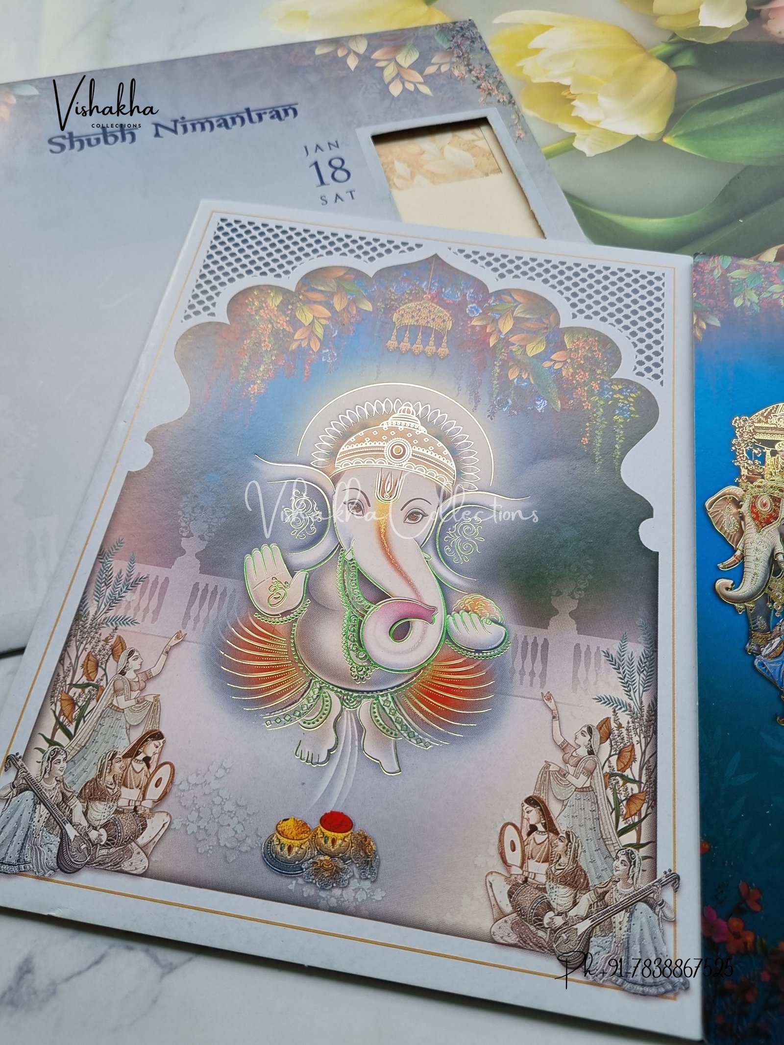 Vishakha Collections presents you beautiful luxury wedding invitation cards with all latest designs and the latest variety. Its just not a wedding invitation card but a beautiful feeling of love and relationship it carries for you. Beautifully printed and packed with a bundle of love. if you like it, dont think again, just go for it.If you are worrying about the quality of the product, send your doubts to us. We are here to help you. If you want in wholesale or bulk, dont forget to contact us.