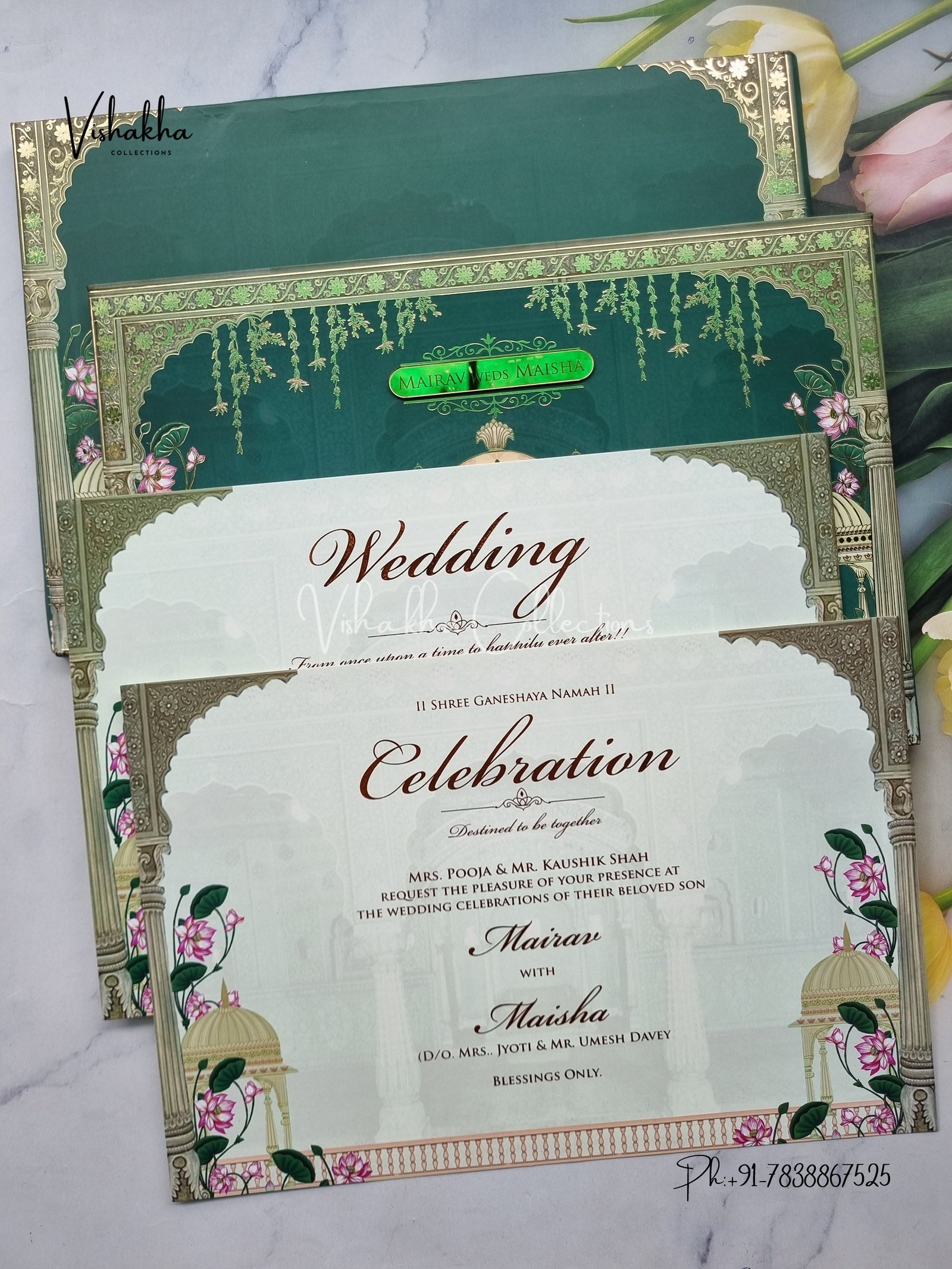 Vishakha Collections presents you beautiful luxury wedding invitation cards with all latest designs and the latest variety. Its just not a wedding invitation card but a beautiful feeling of love and relationship it carries for you. Beautifully printed and packed with a bundle of love. if you like it, dont think again, just go for it.If you are worrying about the quality of the product, send your doubts to us. We are here to help you. If you want in wholesale or bulk, dont forget to contact us.