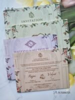 Vishakha Collections presents you beautiful luxury wedding invitation cards with all latest designs and the latest variety. Its just not a wedding invitation card but a beautiful feeling of love and relationship it carries for you. Beautifully printed and packed with a bundle of love. if you like it, dont think again, just go for it.If you are worrying about the quality of the product, send your doubts to us. We are here to help you. If you want in wholesale or bulk, dont forget to contact us.