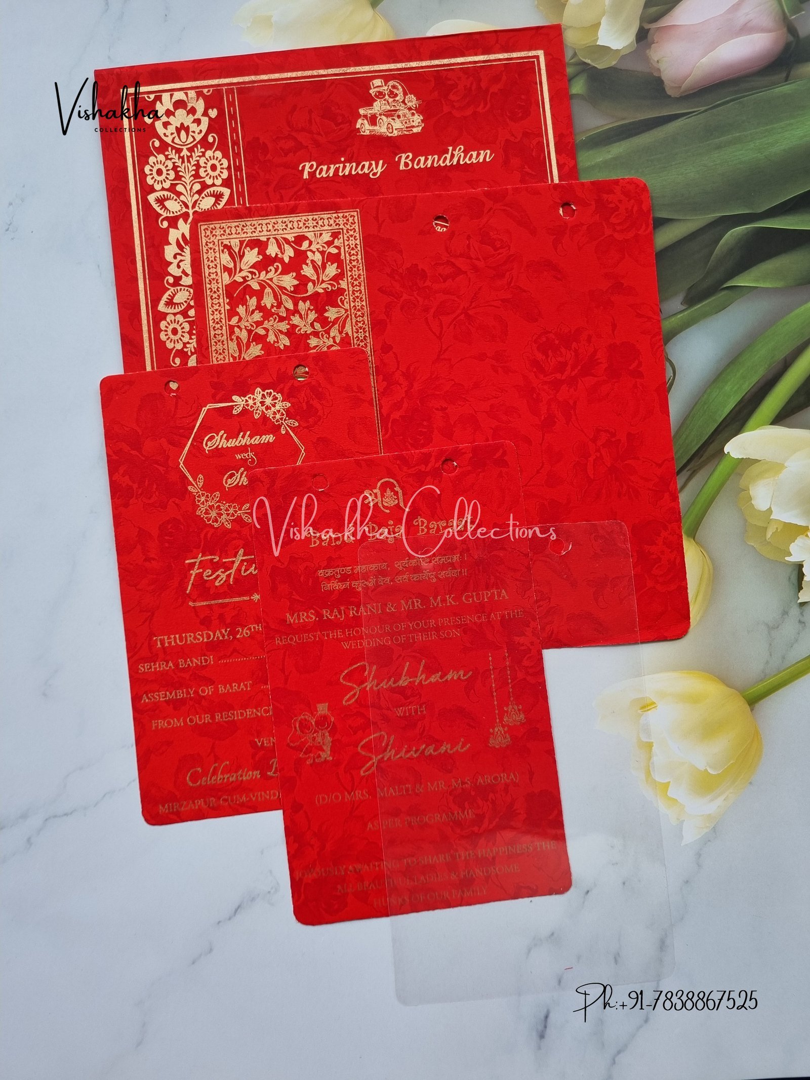 Vishakha Collections presents you beautiful luxury wedding invitation cards with all latest designs and the latest variety. Its just not a wedding invitation card but a beautiful feeling of love and relationship it carries for you. Beautifully printed and packed with a bundle of love. if you like it, dont think again, just go for it.If you are worrying about the quality of the product, send your doubts to us. We are here to help you. If you want in wholesale or bulk, dont forget to contact us.
