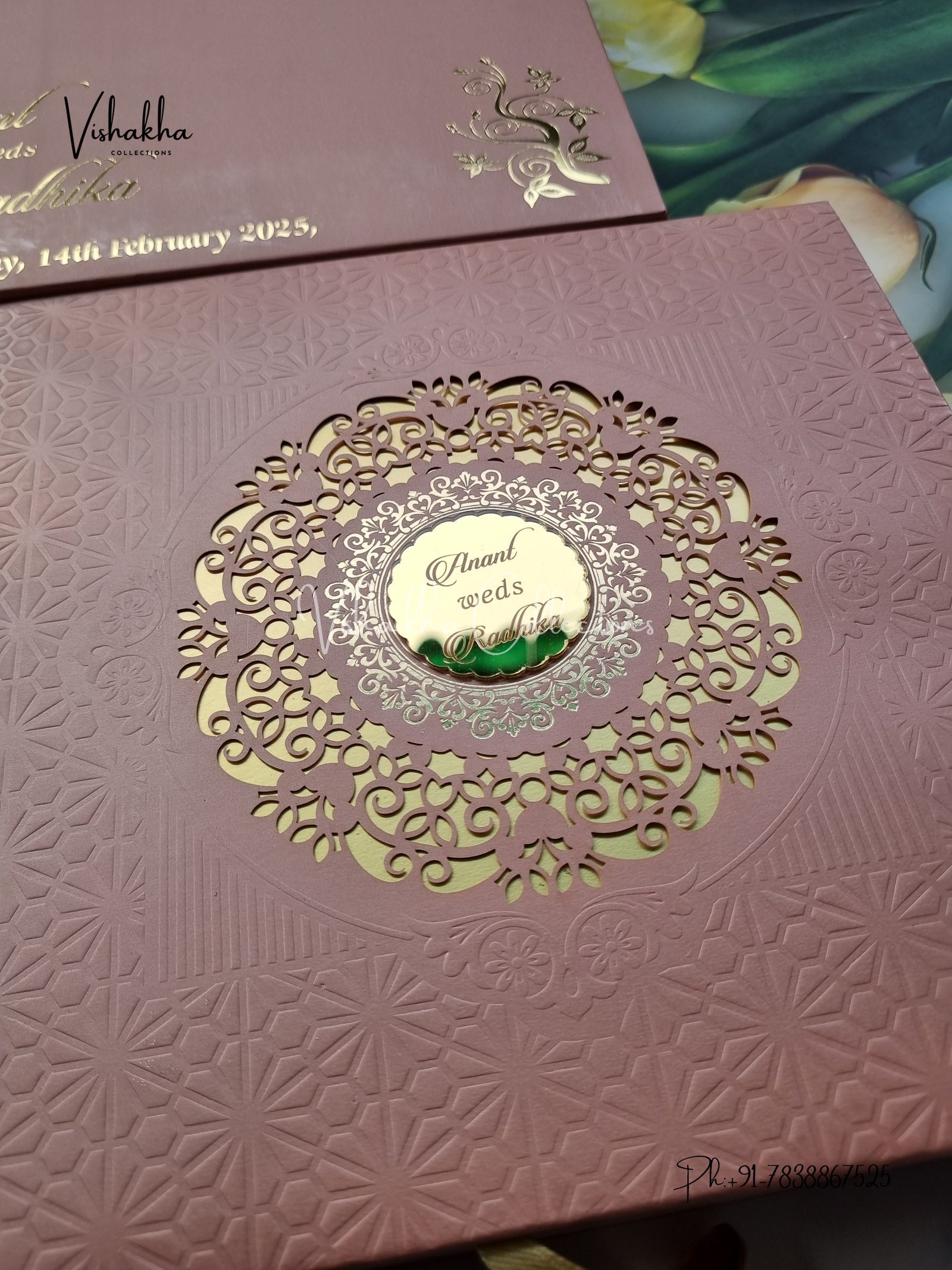 ₹165.00Hindu Muslim Christian Jain Sikh Cardboard Laser Cut Exclusive Wedding Boxes invitation Cards SN-2756