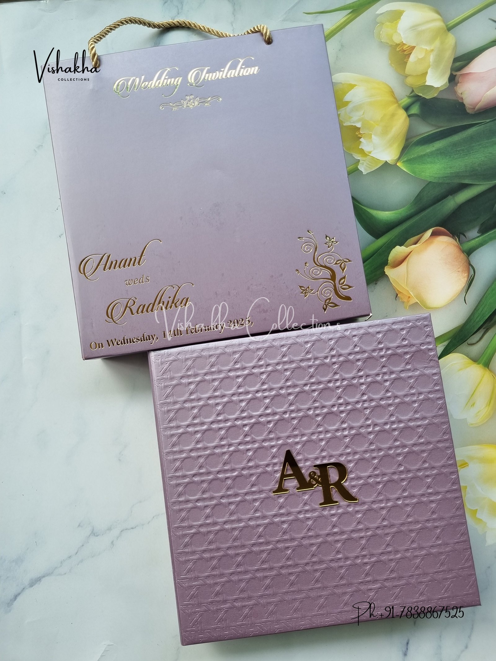 Vishakha Collections presents you beautiful luxury wedding invitation cards with all latest designs and the latest variety. Its just not a wedding invitation card but a beautiful feeling of love and relationship it carries for you. Beautifully printed and packed with a bundle of love. if you like it, dont think again, just go for it.If you are worrying about the quality of the product, send your doubts to us. We are here to help you. If you want in wholesale or bulk, dont forget to contact us.