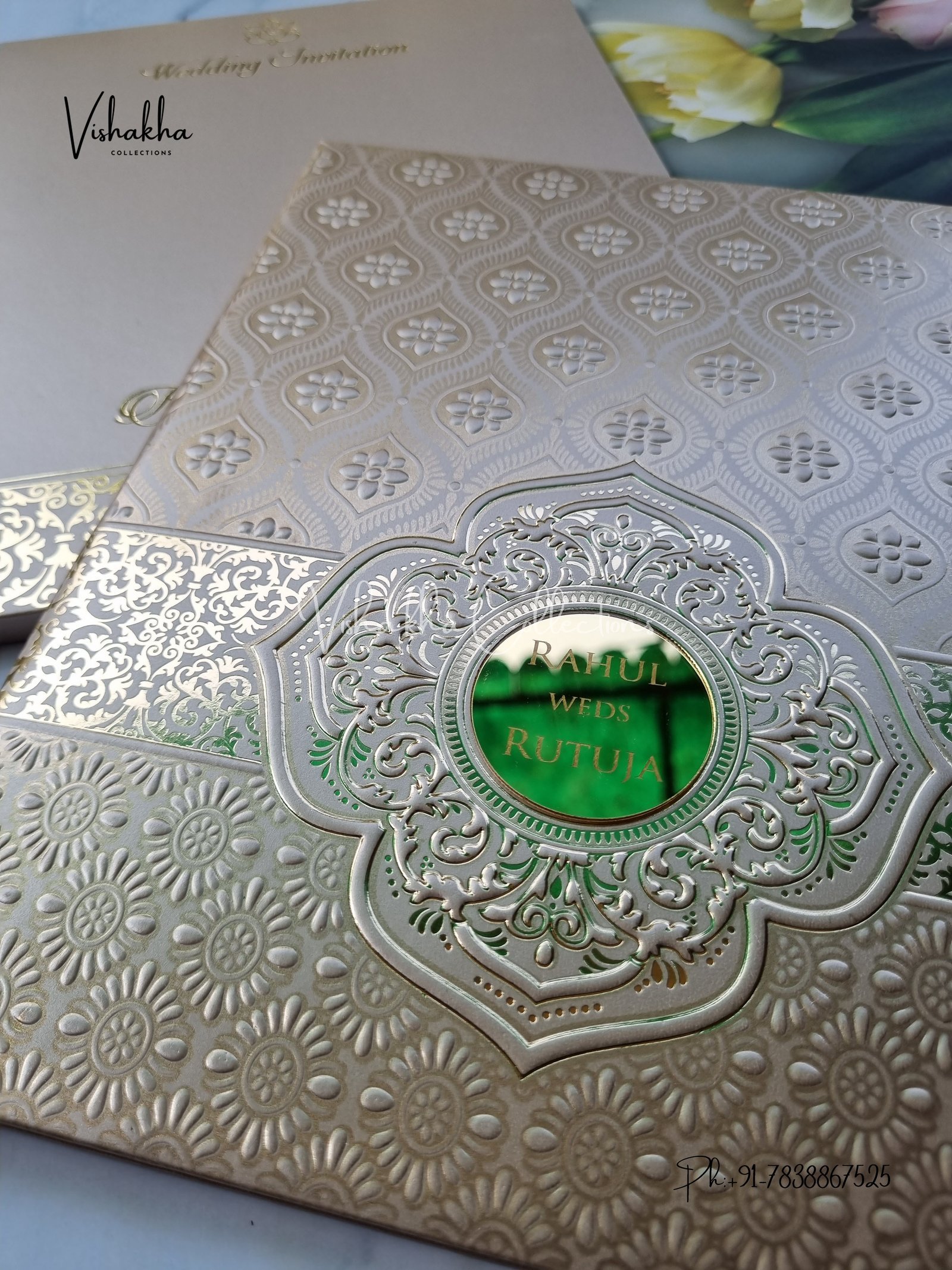 Vishakha Collections presents you beautiful luxury wedding invitation cards with all latest designs and the latest variety. Its just not a wedding invitation card but a beautiful feeling of love and relationship it carries for you. Beautifully printed and packed with a bundle of love. if you like it, dont think again, just go for it.If you are worrying about the quality of the product, send your doubts to us. We are here to help you. If you want in wholesale or bulk, dont forget to contact us.