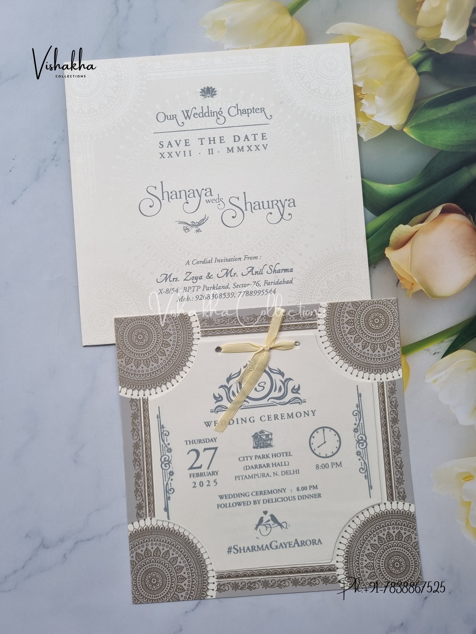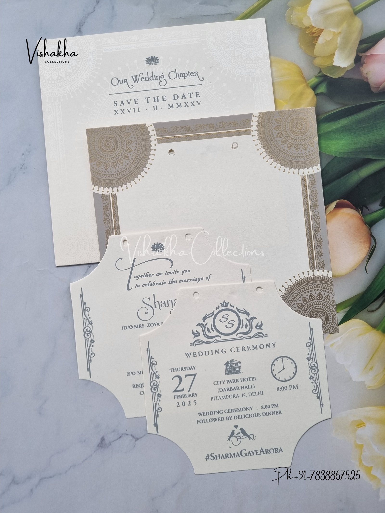Vishakha Collections presents you beautiful luxury wedding invitation cards with all latest designs and the latest variety. Its just not a wedding invitation card but a beautiful feeling of love and relationship it carries for you. Beautifully printed and packed with a bundle of love. if you like it, dont think again, just go for it.If you are worrying about the quality of the product, send your doubts to us. We are here to help you. If you want in wholesale or bulk, dont forget to contact us.