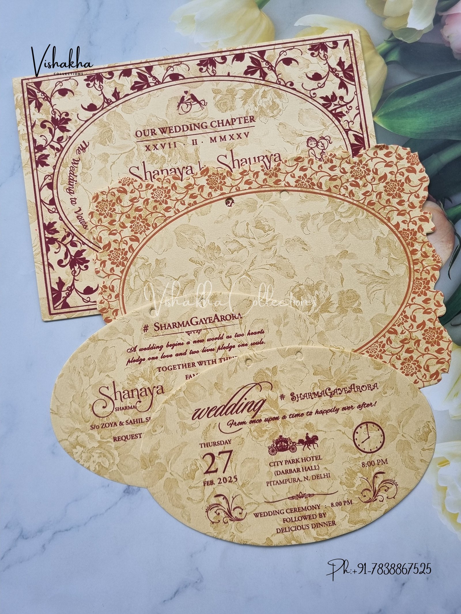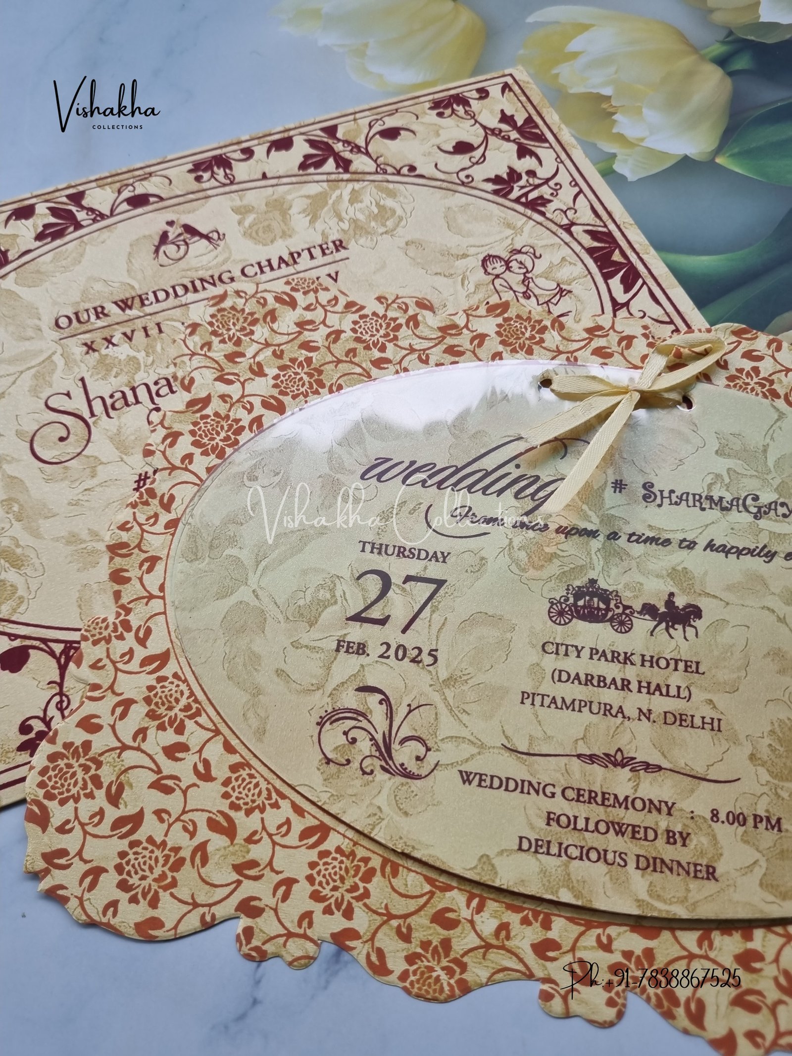 Vishakha Collections presents you beautiful luxury wedding invitation cards with all latest designs and the latest variety. Its just not a wedding invitation card but a beautiful feeling of love and relationship it carries for you. Beautifully printed and packed with a bundle of love. if you like it, dont think again, just go for it.If you are worrying about the quality of the product, send your doubts to us. We are here to help you. If you want in wholesale or bulk, dont forget to contact us.