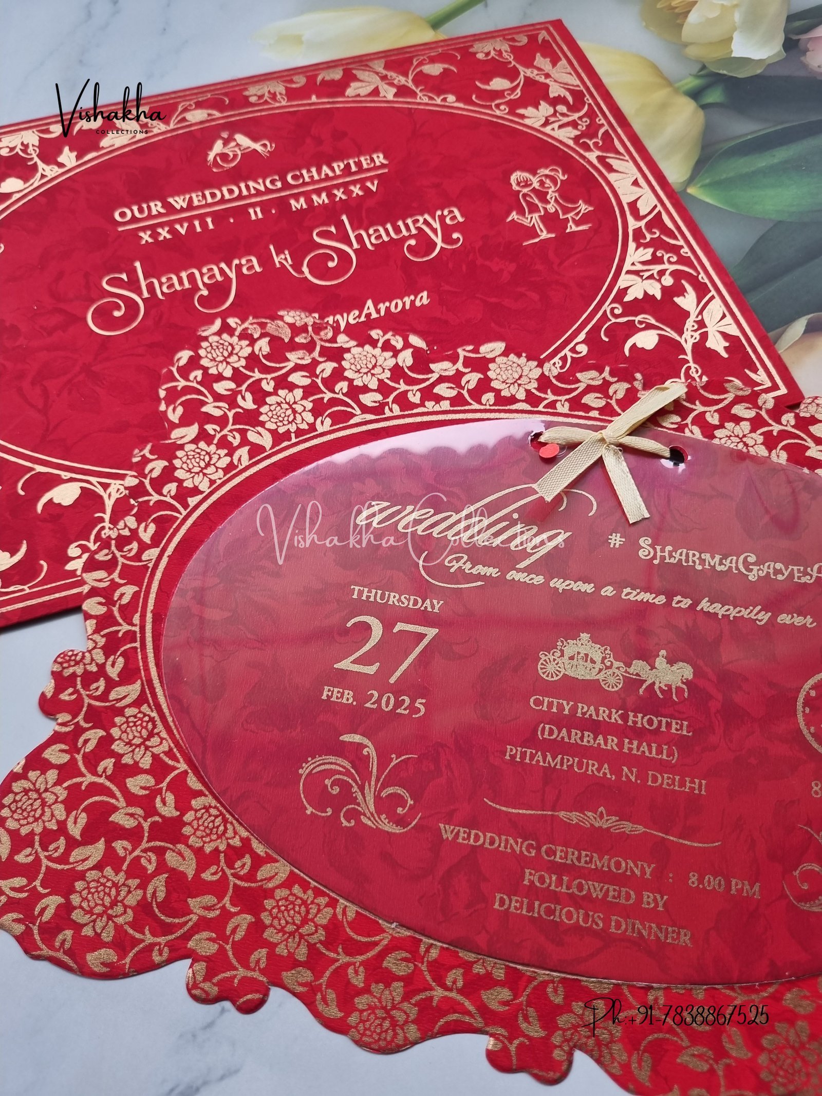 Vishakha Collections presents you beautiful luxury wedding invitation cards with all latest designs and the latest variety. Its just not a wedding invitation card but a beautiful feeling of love and relationship it carries for you. Beautifully printed and packed with a bundle of love. if you like it, dont think again, just go for it.If you are worrying about the quality of the product, send your doubts to us. We are here to help you. If you want in wholesale or bulk, dont forget to contact us.