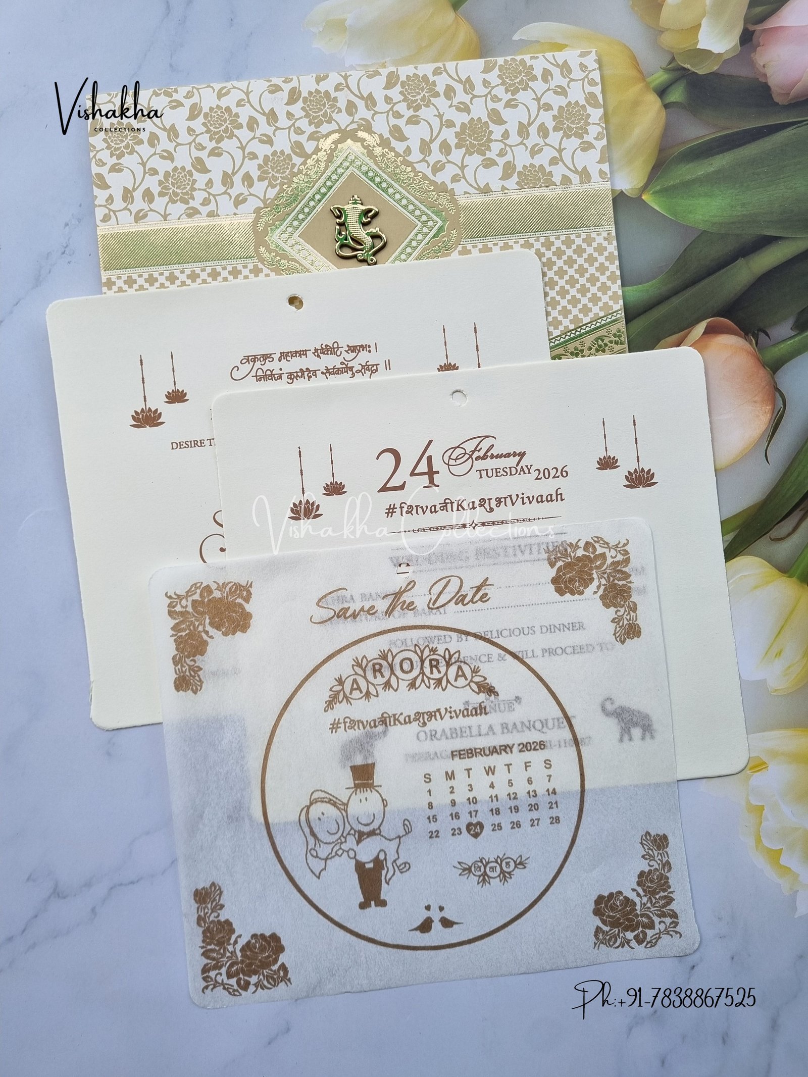 Vishakha Collections presents you beautiful luxury wedding invitation cards with all latest designs and the latest variety. Its just not a wedding invitation card but a beautiful feeling of love and relationship it carries for you. Beautifully printed and packed with a bundle of love. if you like it, dont think again, just go for it.If you are worrying about the quality of the product, send your doubts to us. We are here to help you. If you want in wholesale or bulk, dont forget to contact us.