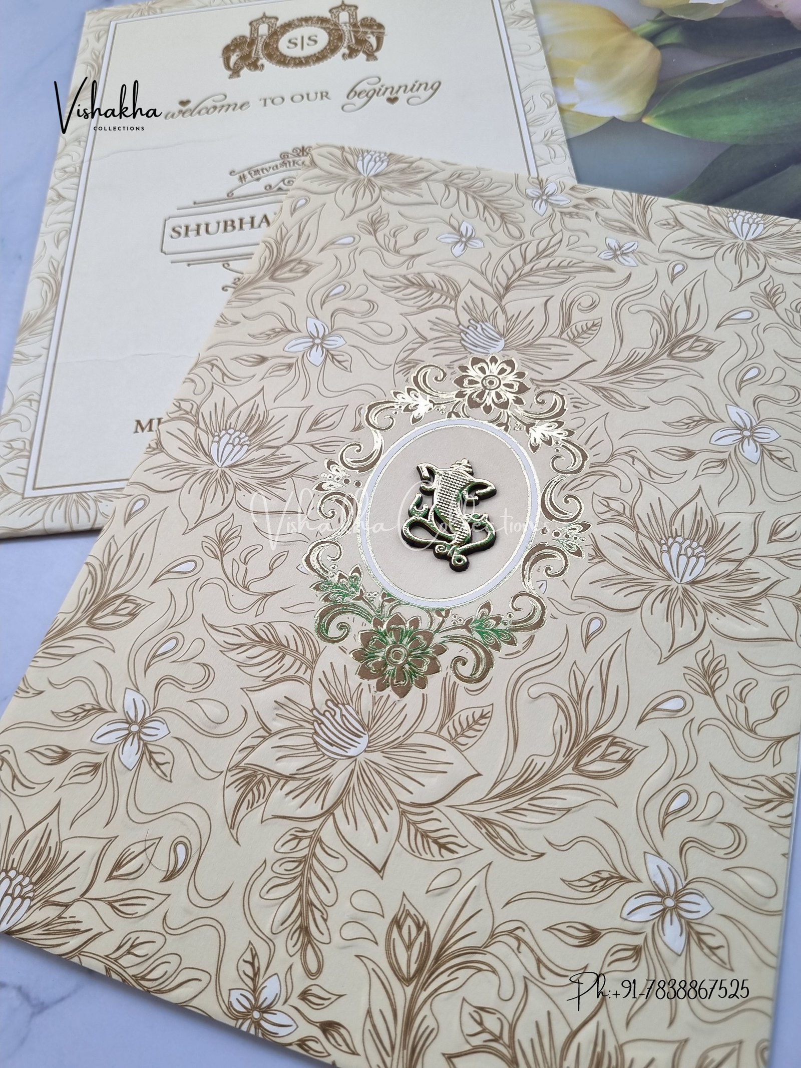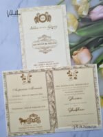 Vishakha Collections presents you beautiful luxury wedding invitation cards with all latest designs and the latest variety. Its just not a wedding invitation card but a beautiful feeling of love and relationship it carries for you. Beautifully printed and packed with a bundle of love. if you like it, dont think again, just go for it.If you are worrying about the quality of the product, send your doubts to us. We are here to help you. If you want in wholesale or bulk, dont forget to contact us.