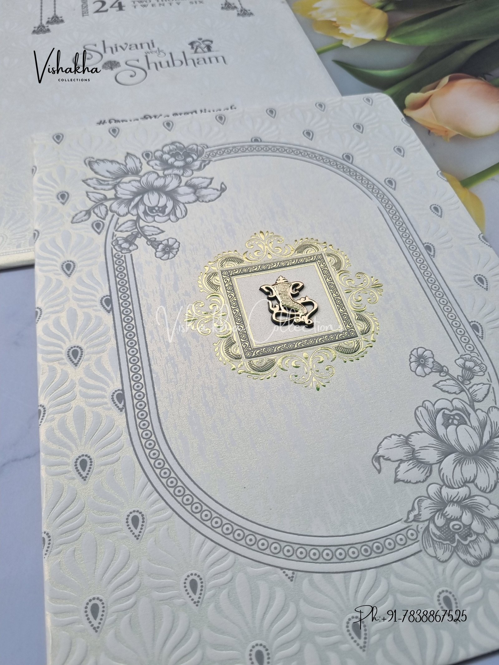 Vishakha Collections presents you beautiful luxury wedding invitation cards with all latest designs and the latest variety. Its just not a wedding invitation card but a beautiful feeling of love and relationship it carries for you. Beautifully printed and packed with a bundle of love. if you like it, dont think again, just go for it.If you are worrying about the quality of the product, send your doubts to us. We are here to help you. If you want in wholesale or bulk, dont forget to contact us.