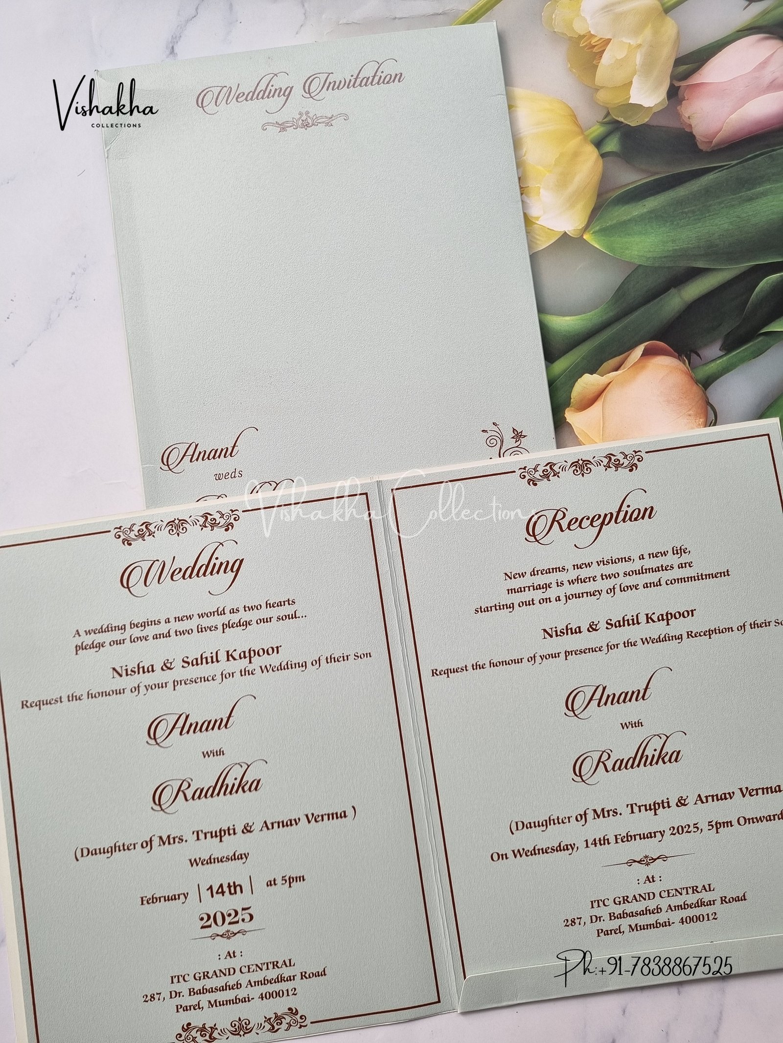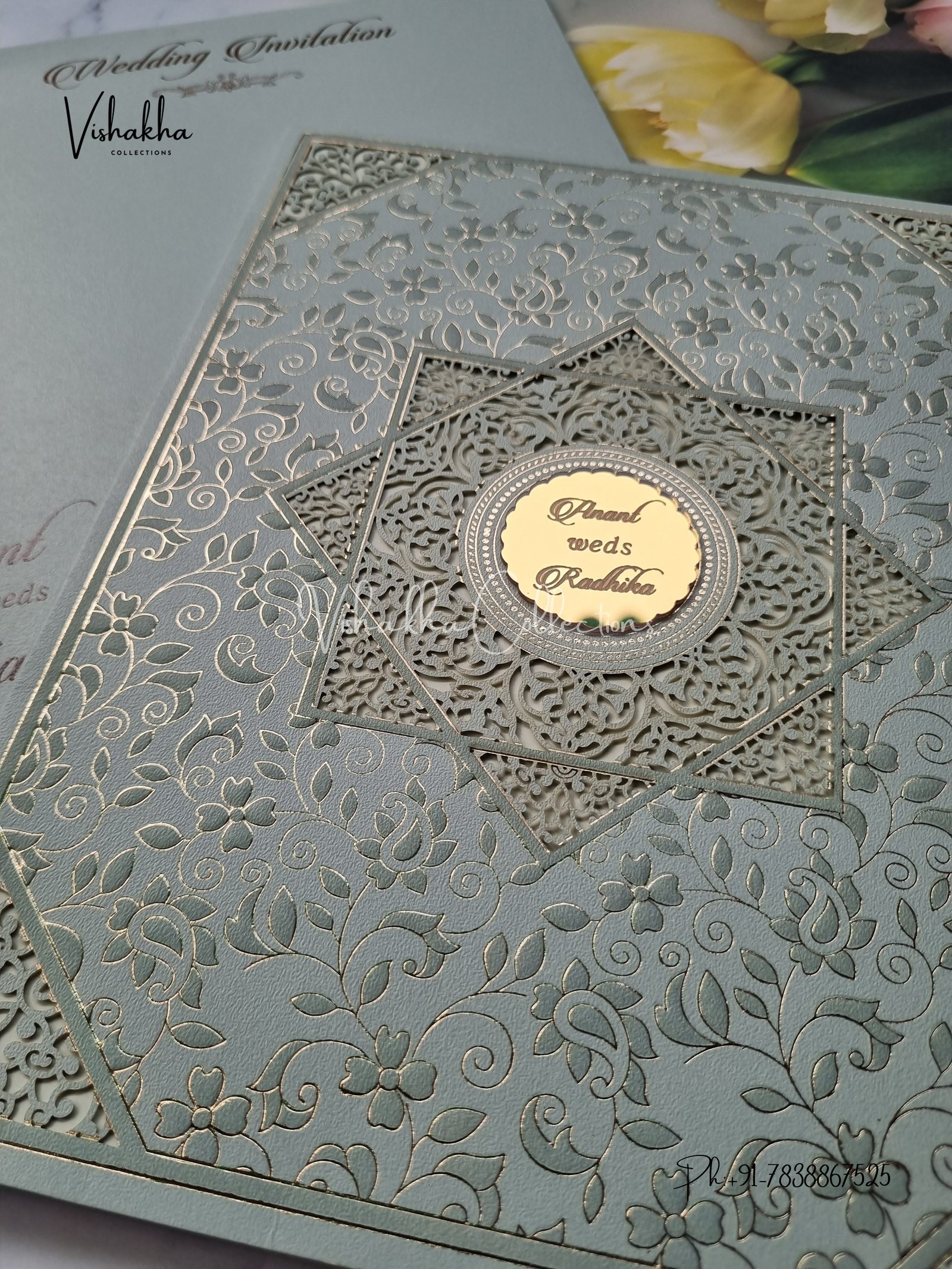 Vishakha Collections presents you beautiful luxury wedding invitation cards with all latest designs and the latest variety. Its just not a wedding invitation card but a beautiful feeling of love and relationship it carries for you. Beautifully printed and packed with a bundle of love. if you like it, dont think again, just go for it.If you are worrying about the quality of the product, send your doubts to us. We are here to help you. If you want in wholesale or bulk, dont forget to contact us.