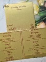 Vishakha Collections presents you beautiful luxury wedding invitation cards with all latest designs and the latest variety. Its just not a wedding invitation card but a beautiful feeling of love and relationship it carries for you. Beautifully printed and packed with a bundle of love. if you like it, dont think again, just go for it.If you are worrying about the quality of the product, send your doubts to us. We are here to help you. If you want in wholesale or bulk, dont forget to contact us.