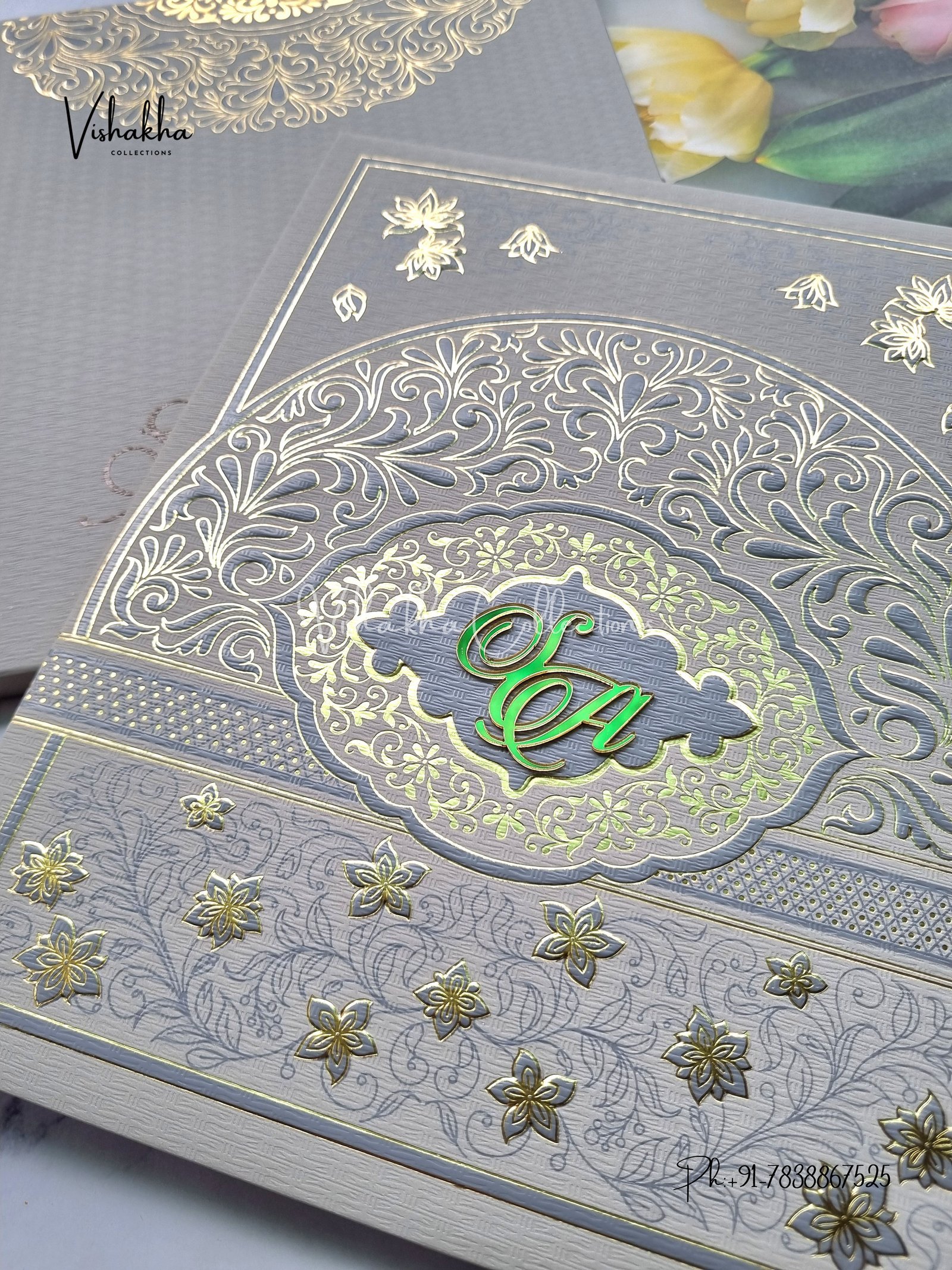 Vishakha Collections presents you beautiful luxury wedding invitation cards with all latest designs and the latest variety. Its just not a wedding invitation card but a beautiful feeling of love and relationship it carries for you. Beautifully printed and packed with a bundle of love. if you like it, dont think again, just go for it.If you are worrying about the quality of the product, send your doubts to us. We are here to help you. If you want in wholesale or bulk, dont forget to contact us.
