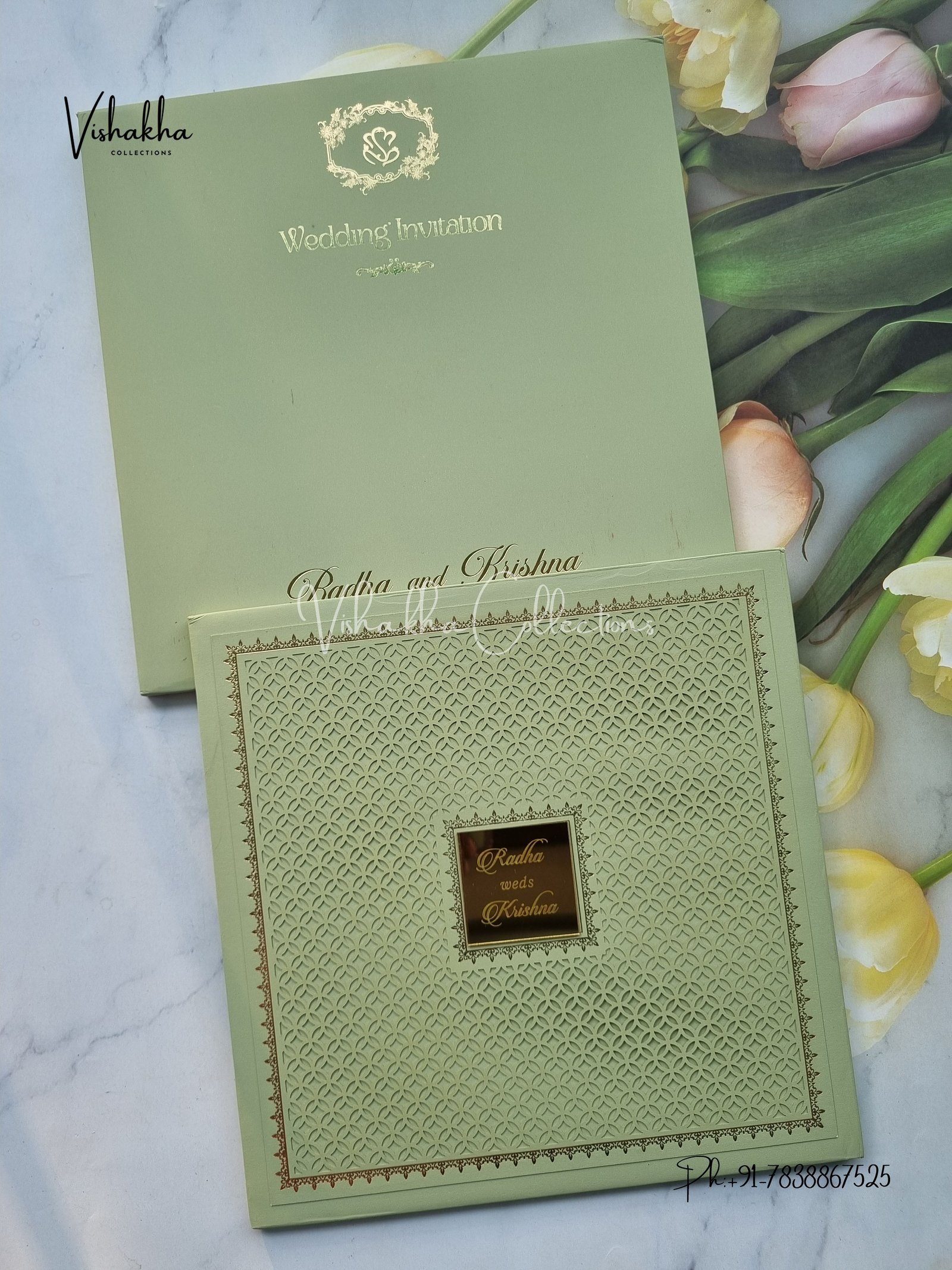 Vishakha Collections presents you beautiful luxury wedding invitation cards with all latest designs and the latest variety. Its just not a wedding invitation card but a beautiful feeling of love and relationship it carries for you. Beautifully printed and packed with a bundle of love. if you like it, dont think again, just go for it.If you are worrying about the quality of the product, send your doubts to us. We are here to help you. If you want in wholesale or bulk, dont forget to contact us.