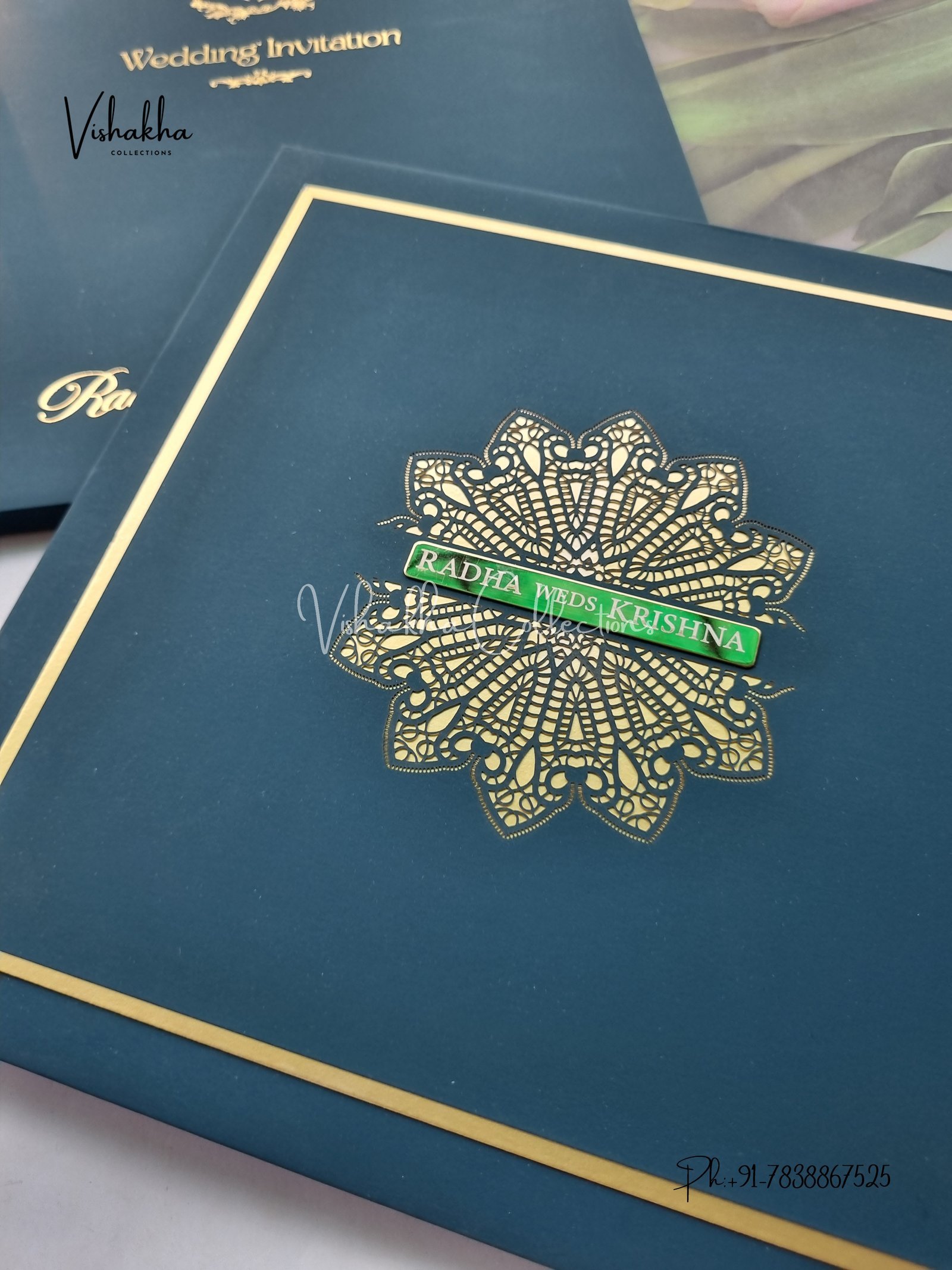 Vishakha Collections presents you beautiful luxury wedding invitation cards with all latest designs and the latest variety. Its just not a wedding invitation card but a beautiful feeling of love and relationship it carries for you. Beautifully printed and packed with a bundle of love. if you like it, dont think again, just go for it.If you are worrying about the quality of the product, send your doubts to us. We are here to help you. If you want in wholesale or bulk, dont forget to contact us.
