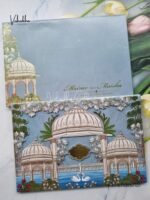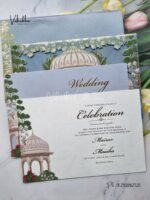 Be the first to review “Hindu Muslim Christian Sikh Padded MDF Board Laser Cut greyish blue Colored invitation Cards SK-3463”