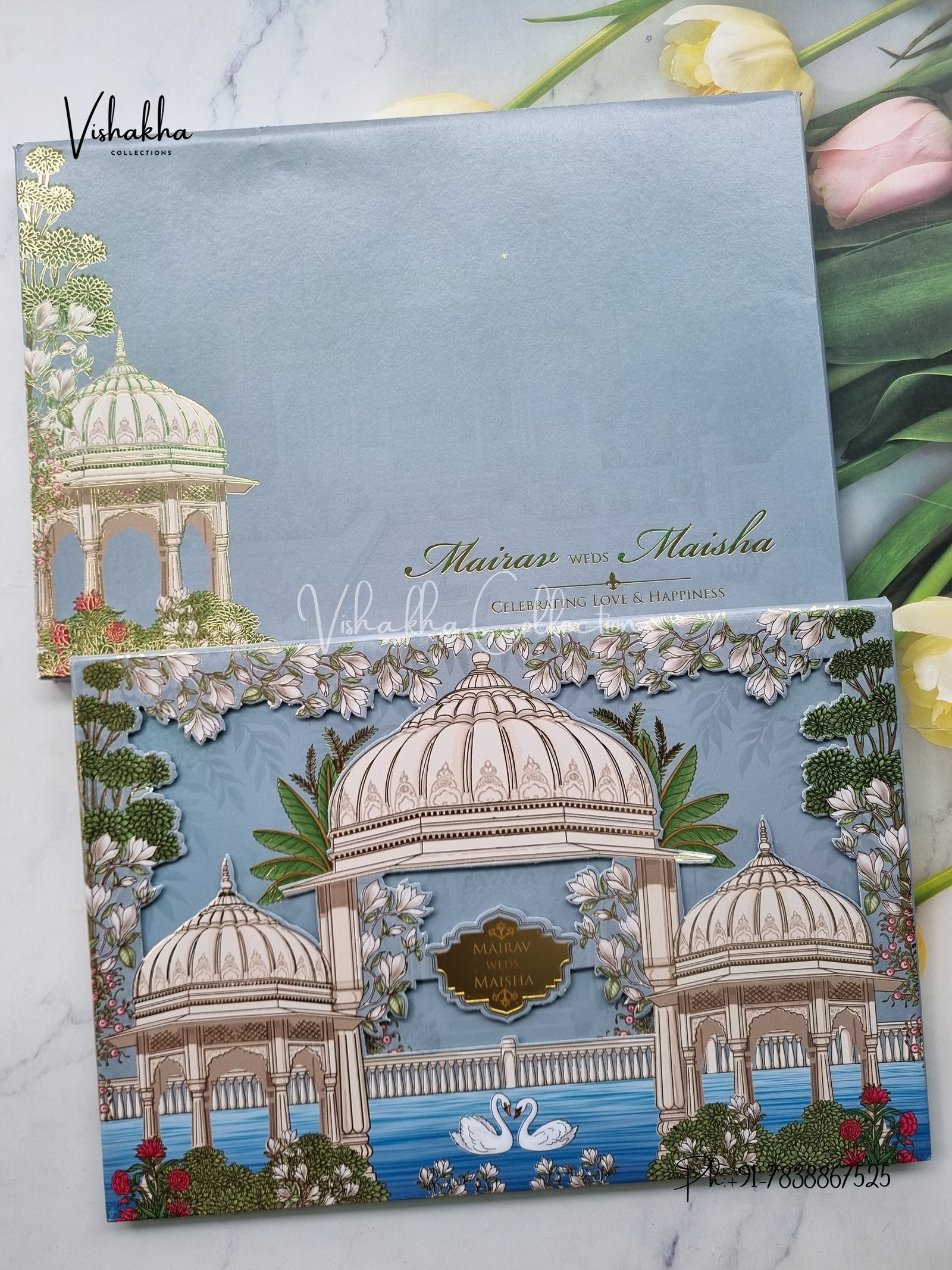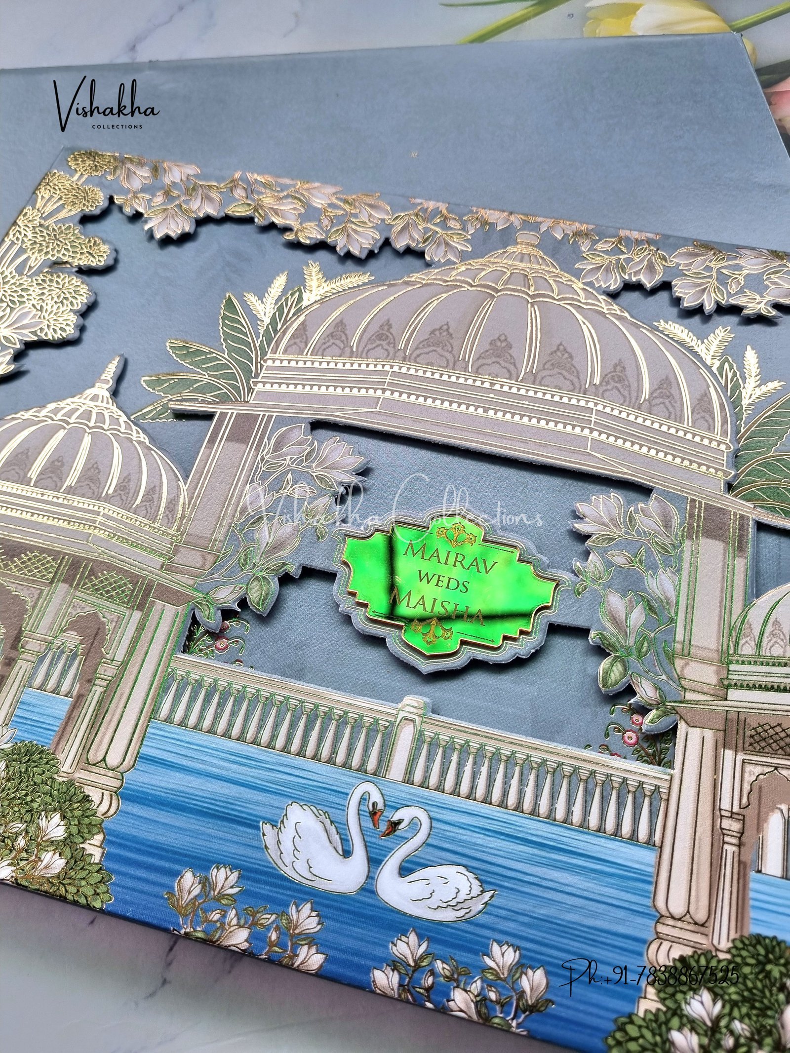 Vishakha Collections presents you beautiful luxury wedding invitation cards with all latest designs and the latest variety. Its just not a wedding invitation card but a beautiful feeling of love and relationship it carries for you. Beautifully printed and packed with a bundle of love. if you like it, dont think again, just go for it.If you are worrying about the quality of the product, send your doubts to us. We are here to help you. If you want in wholesale or bulk, dont forget to contact us.