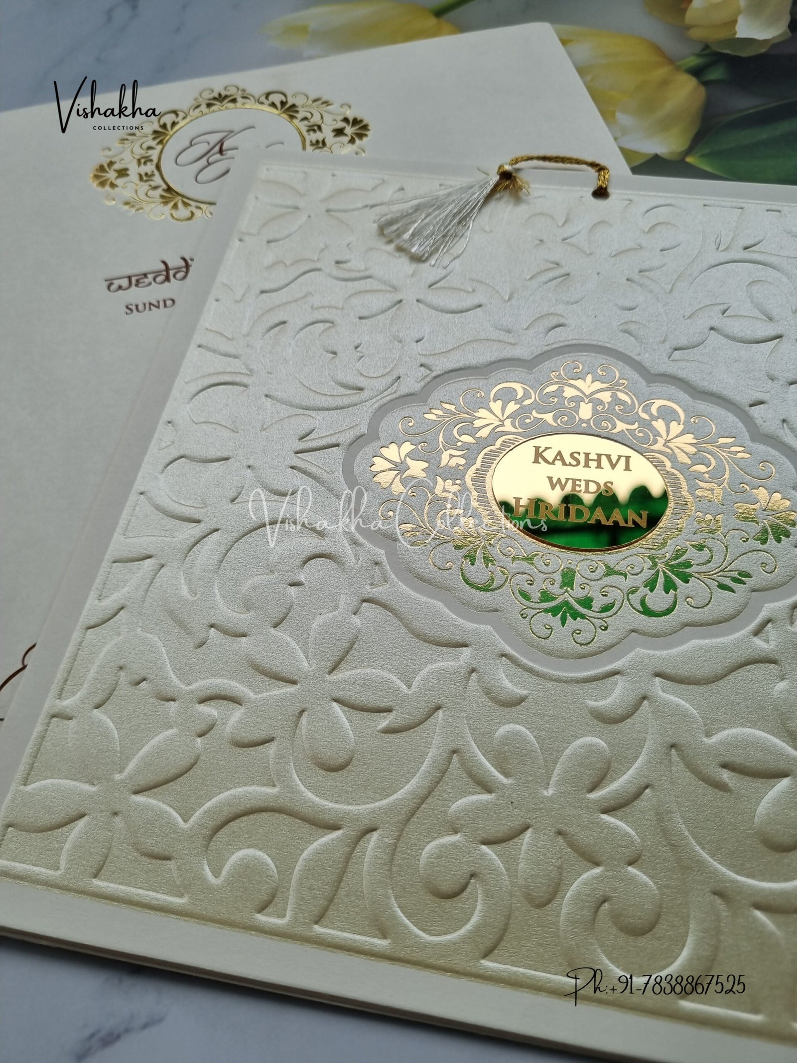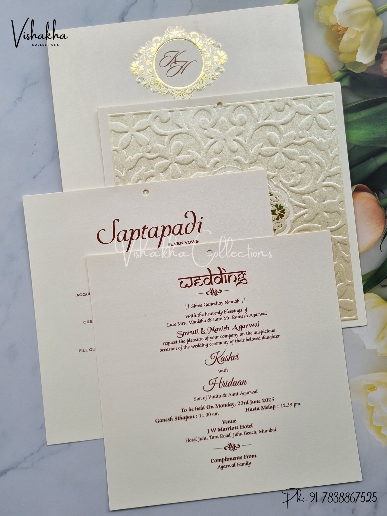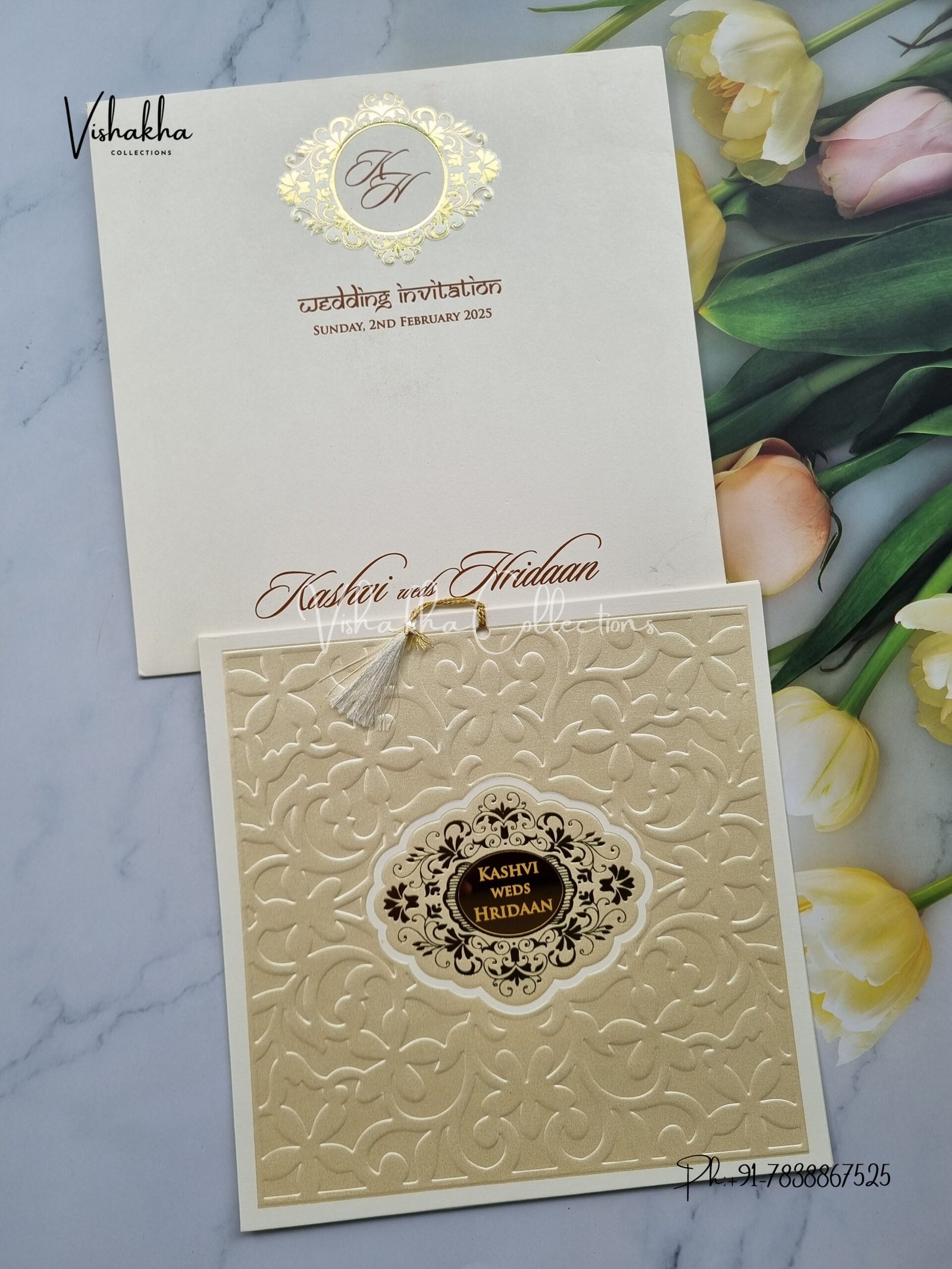 Vishakha Collections presents you beautiful luxury wedding invitation cards with all latest designs and the latest variety. Its just not a wedding invitation card but a beautiful feeling of love and relationship it carries for you. Beautifully printed and packed with a bundle of love. if you like it, dont think again, just go for it.If you are worrying about the quality of the product, send your doubts to us. We are here to help you. If you want in wholesale or bulk, dont forget to contact us.