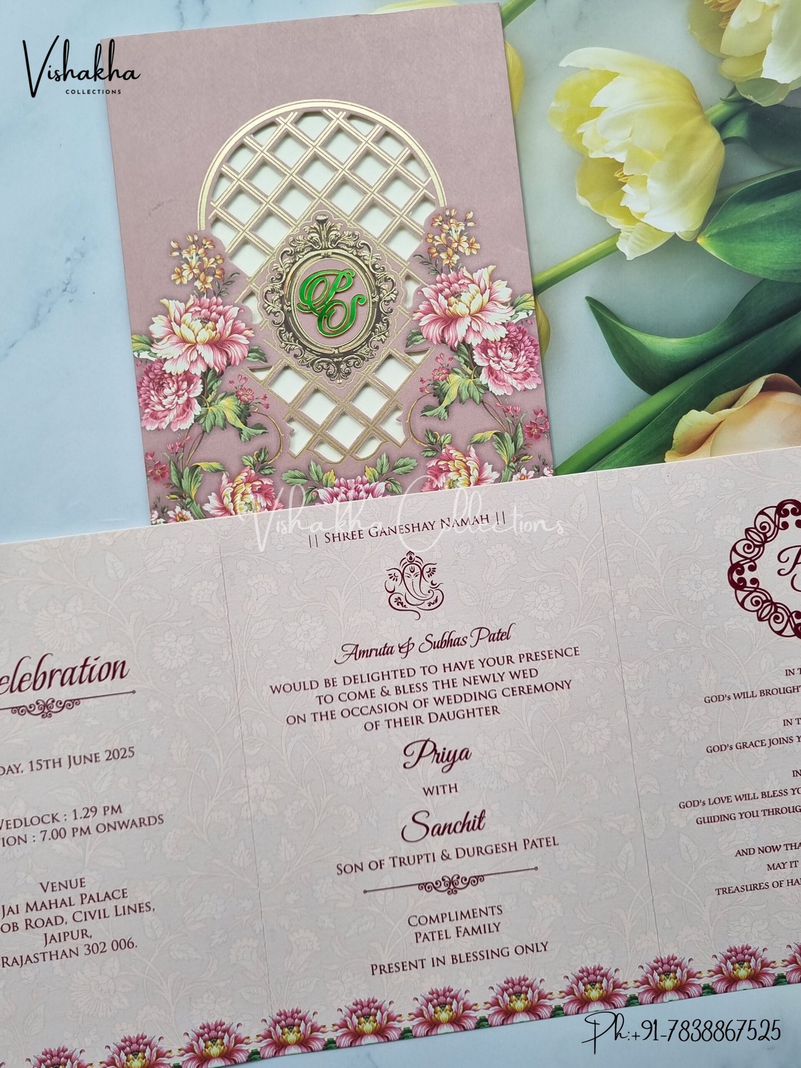 Vishakha Collections presents you beautiful luxury wedding invitation cards with all latest designs and the latest variety. Its just not a wedding invitation card but a beautiful feeling of love and relationship it carries for you. Beautifully printed and packed with a bundle of love. if you like it, dont think again, just go for it.If you are worrying about the quality of the product, send your doubts to us. We are here to help you. If you want in wholesale or bulk, dont forget to contact us.