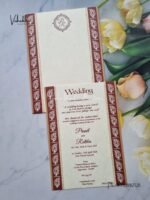 Vishakha Collections presents you beautiful luxury wedding invitation cards with all latest designs and the latest variety. Its just not a wedding invitation card but a beautiful feeling of love and relationship it carries for you. Beautifully printed and packed with a bundle of love. if you like it, dont think again, just go for it.If you are worrying about the quality of the product, send your doubts to us. We are here to help you. If you want in wholesale or bulk, dont forget to contact us.