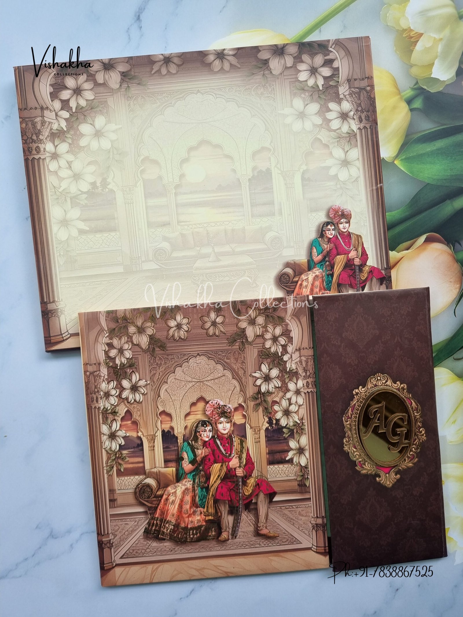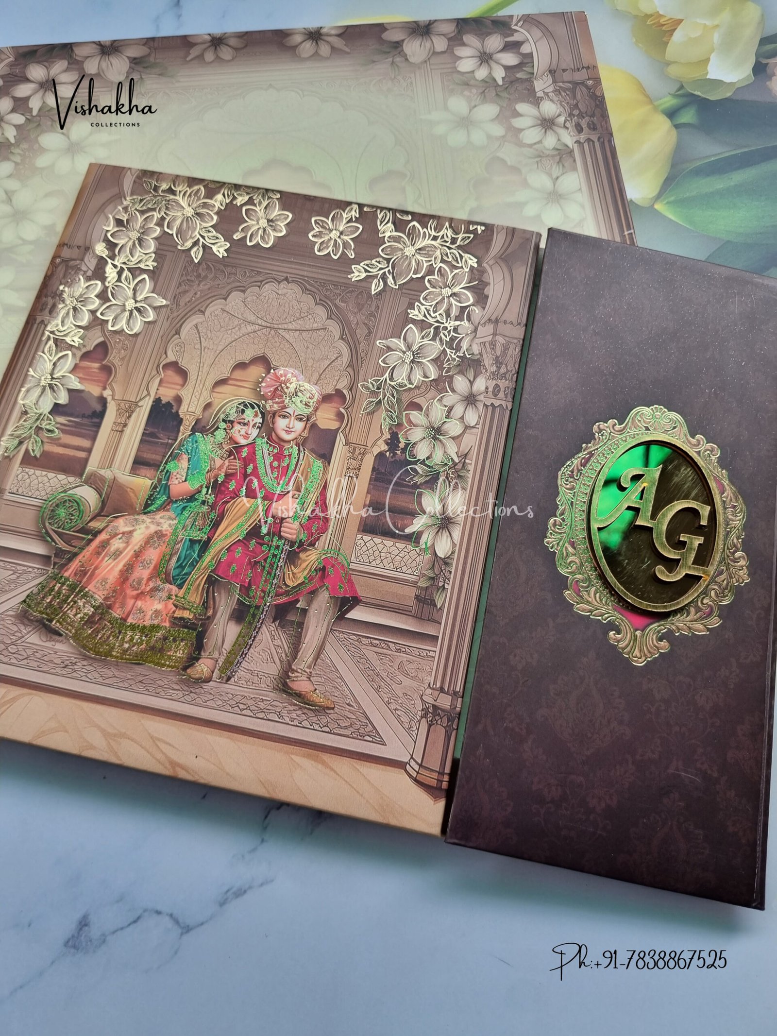 Be the first to review “Indian Bride Groom in Dark Brown Double door with acrylic name plate gatta Shadi card”