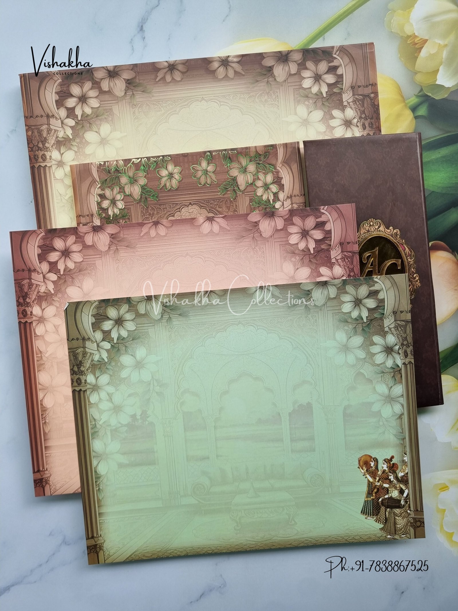 Vishakha Collections presents you beautiful luxury wedding invitation cards with all latest designs and the latest variety. Its just not a wedding invitation card but a beautiful feeling of love and relationship it carries for you. Beautifully printed and packed with a bundle of love. if you like it, dont think again, just go for it.If you are worrying about the quality of the product, send your doubts to us. We are here to help you. If you want in wholesale or bulk, dont forget to contact us.