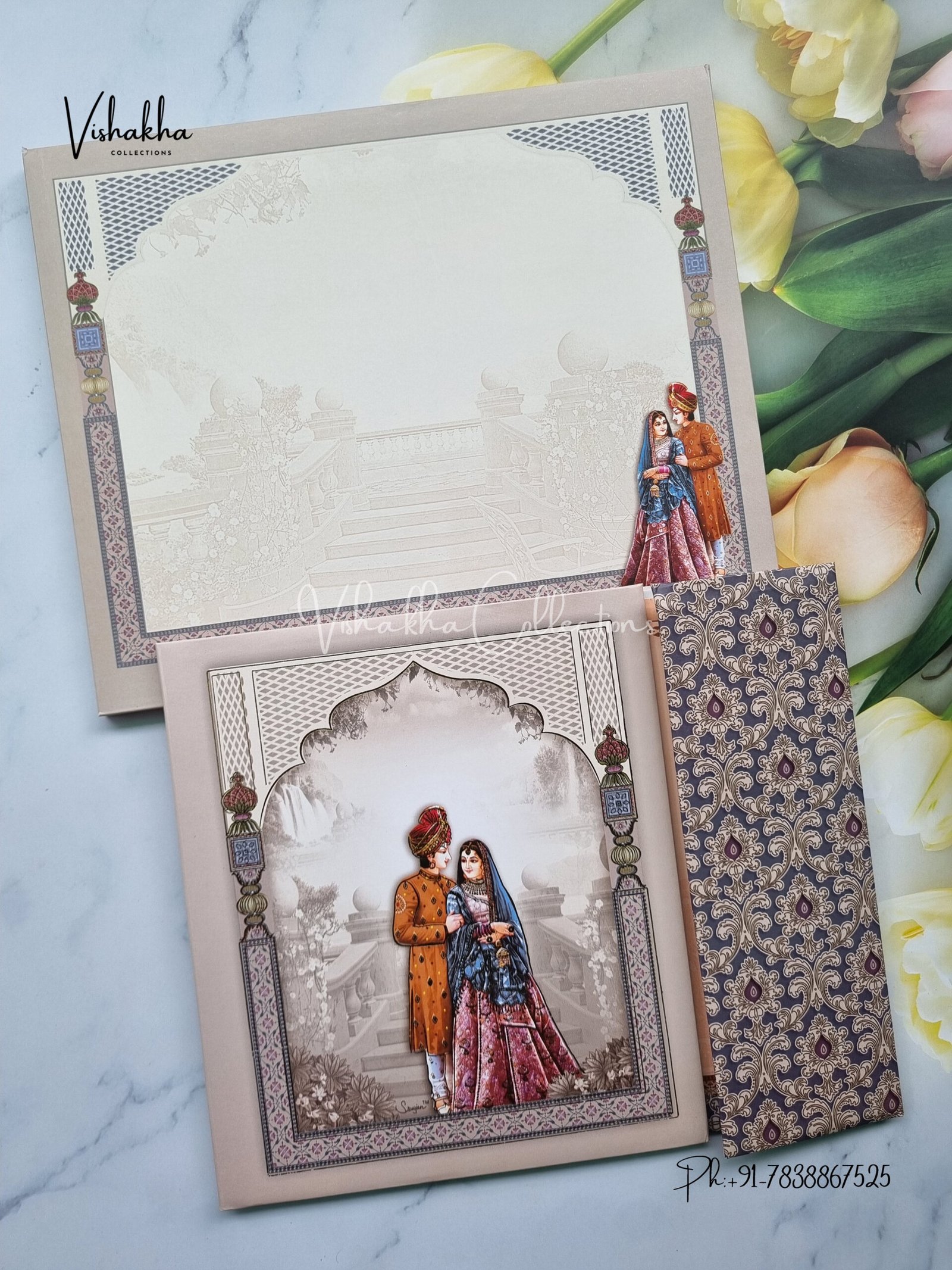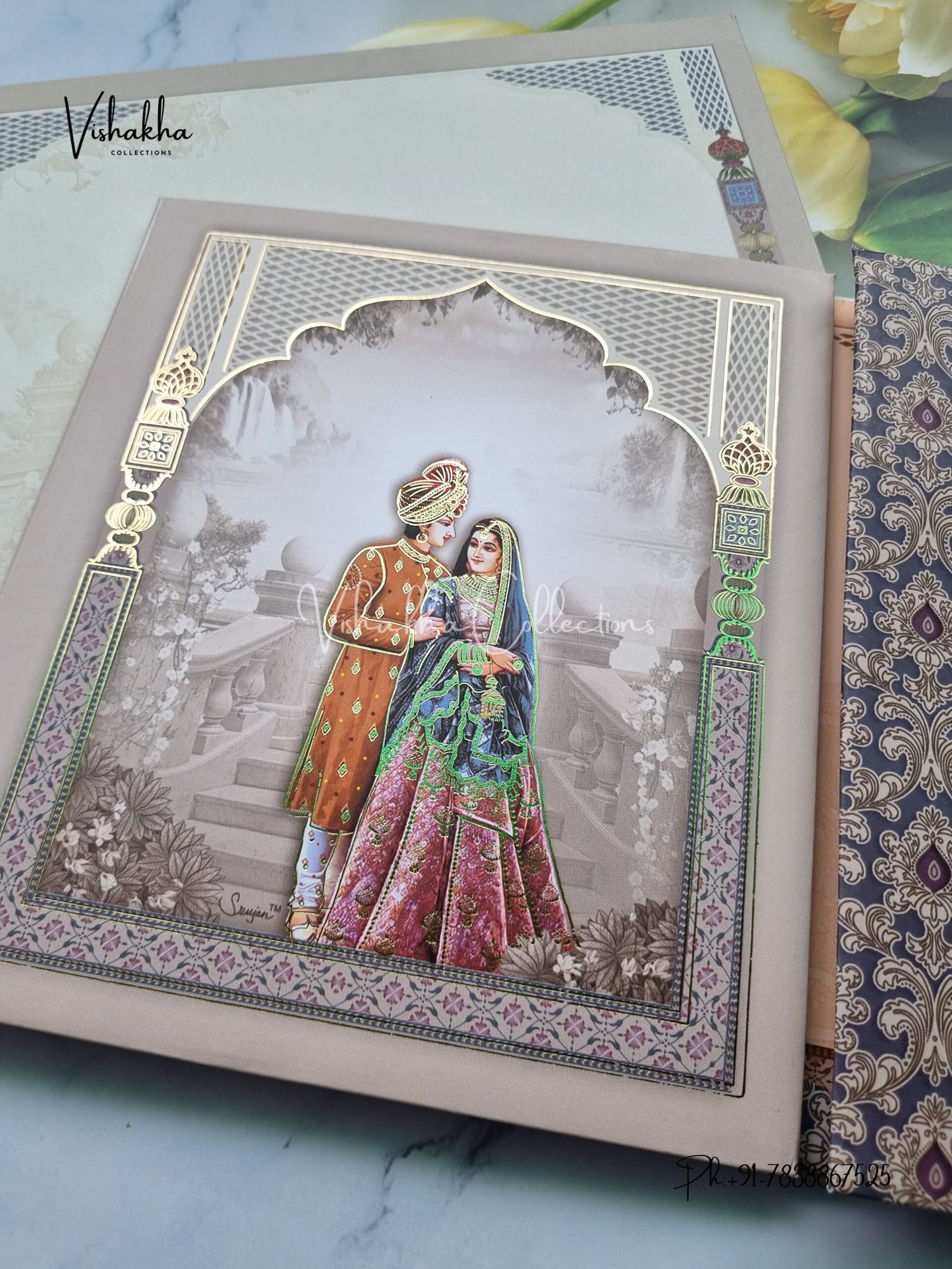 ₹114.00Indian dulha dulhan with Royal pattern Double door hardboard padded Wedding Invitation Card