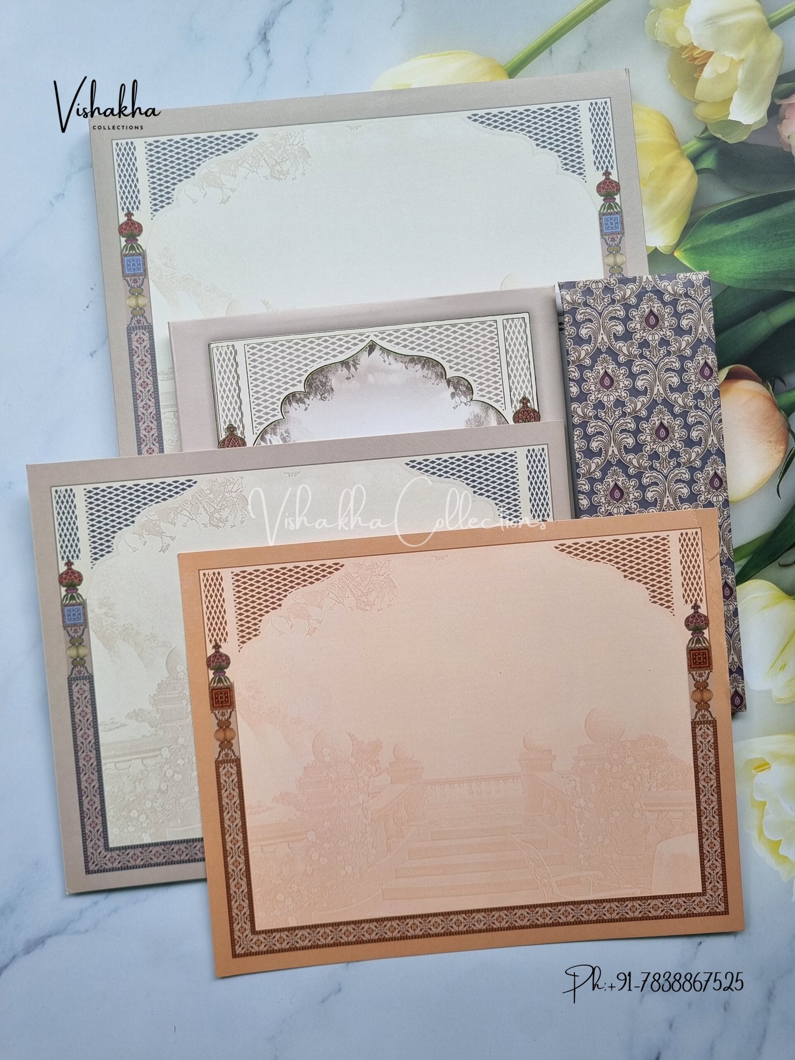 Vishakha Collections presents you beautiful luxury wedding invitation cards with all latest designs and the latest variety. Its just not a wedding invitation card but a beautiful feeling of love and relationship it carries for you. Beautifully printed and packed with a bundle of love. if you like it, dont think again, just go for it.If you are worrying about the quality of the product, send your doubts to us. We are here to help you. If you want in wholesale or bulk, dont forget to contact us.